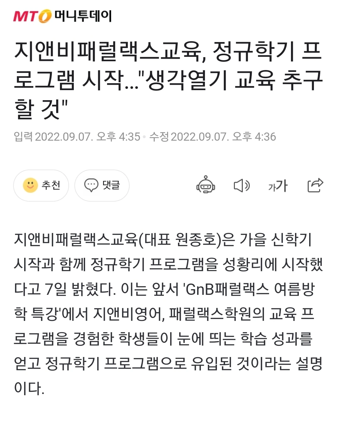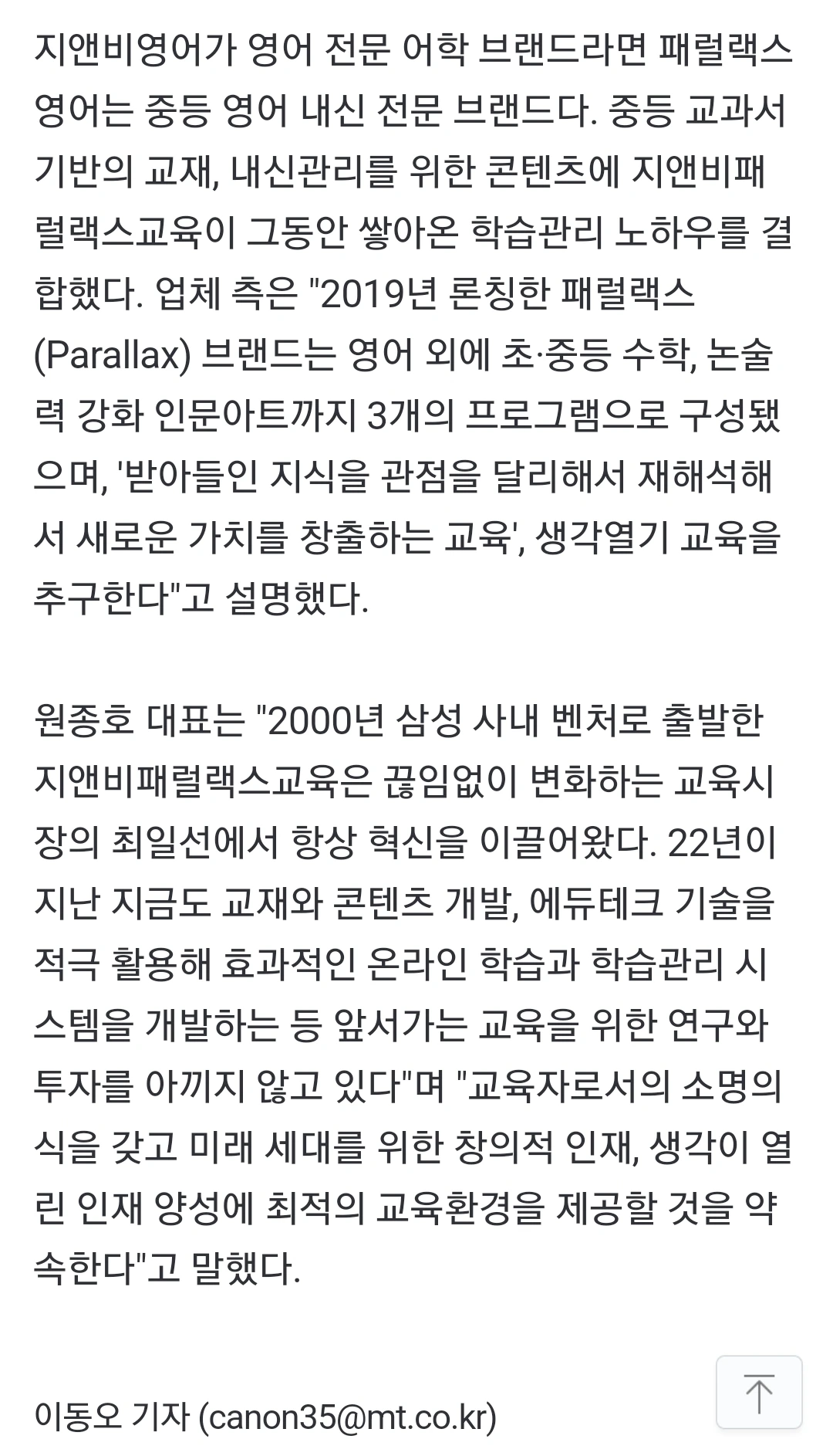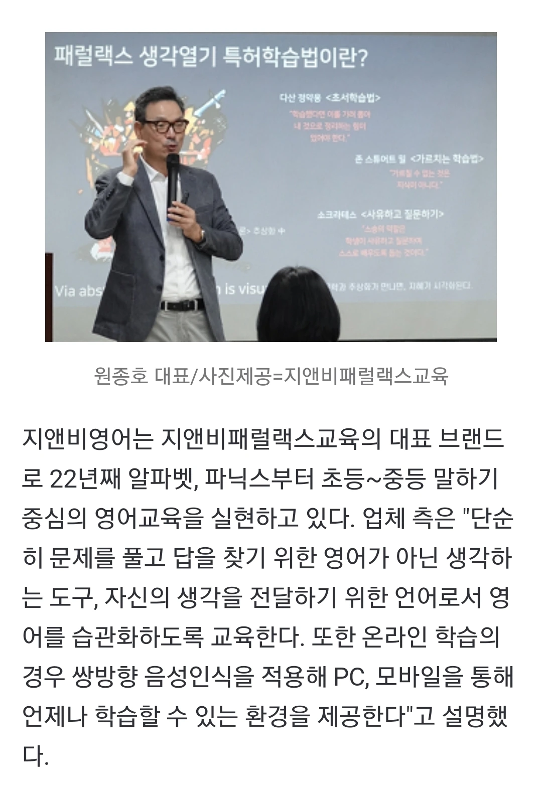 지앤비패럴랙스교육 신문기사