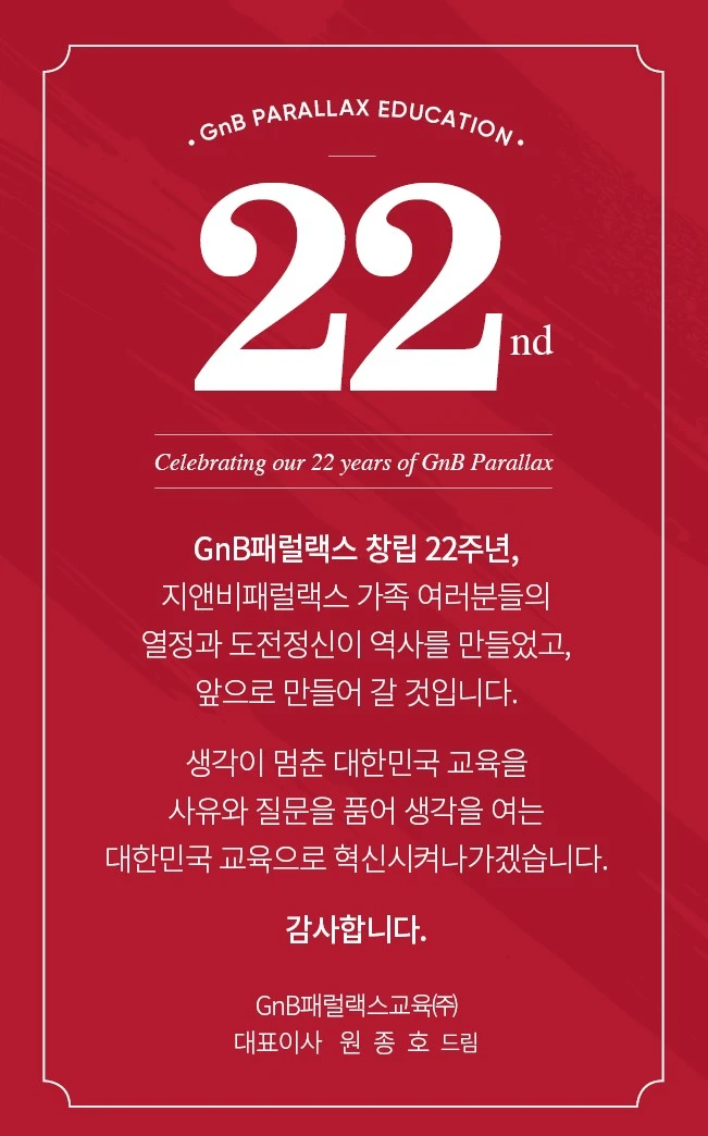 이것이 저희 GnB패럴랙스 교육의 사명이자