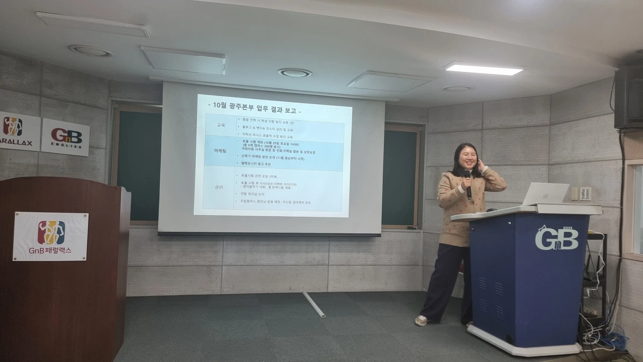 지앤비패럴랙스교육 11월 전국 본부장 회의 양민화 본부장님 발표 장면