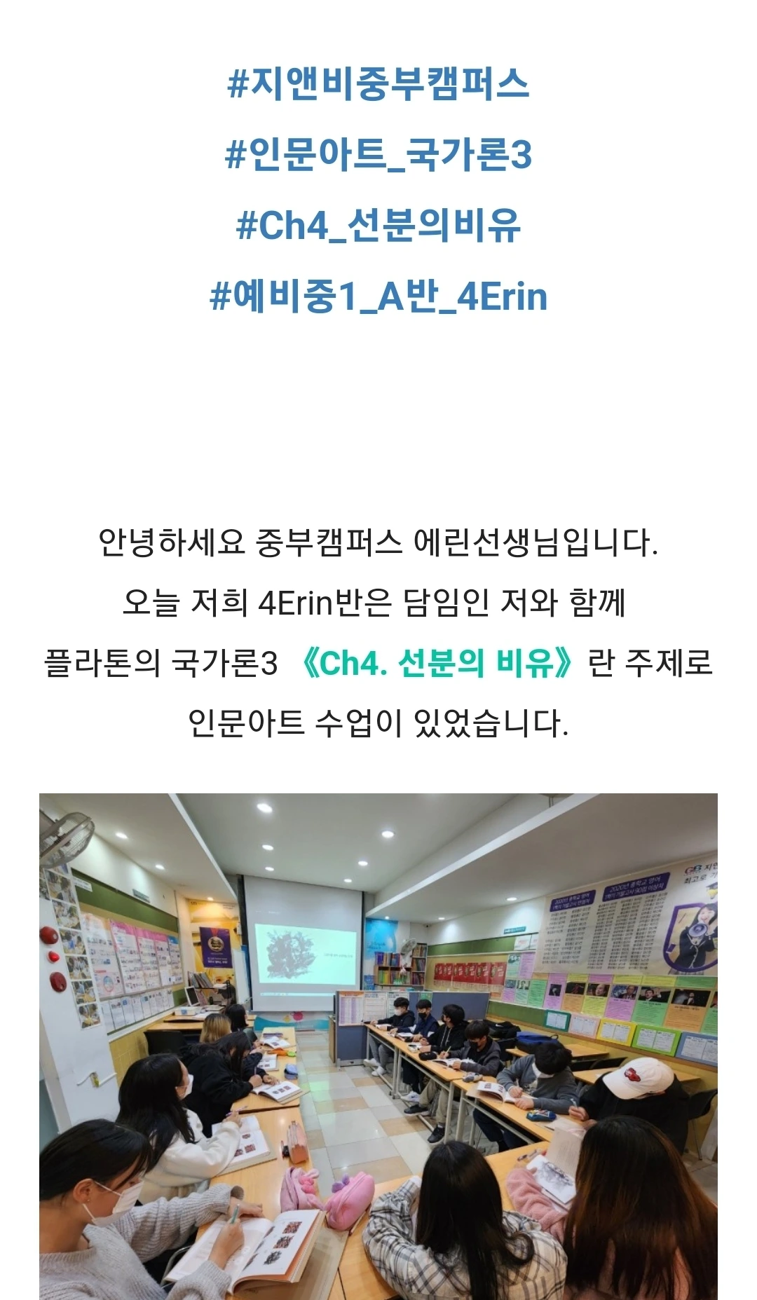 지앤비패럴랙스 중부 캠퍼스 인문아트 수업장면