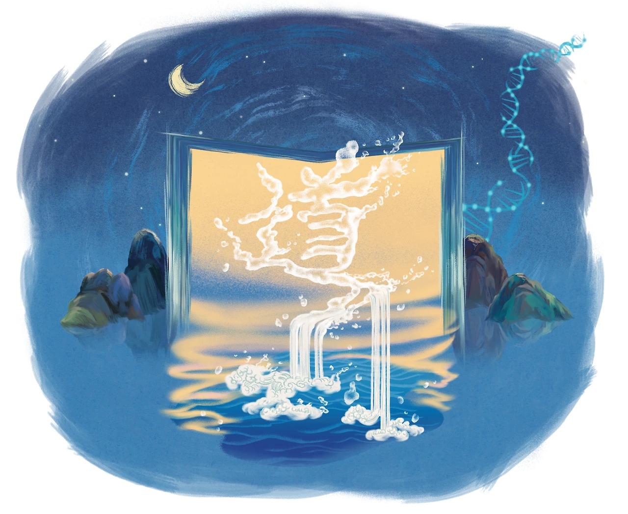 별자리를 닮은 푸른 띠는 DNA 이중 나선 구조로,
