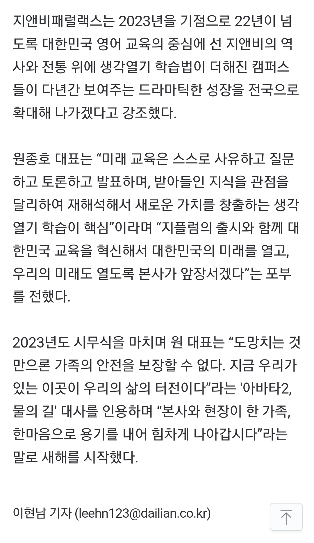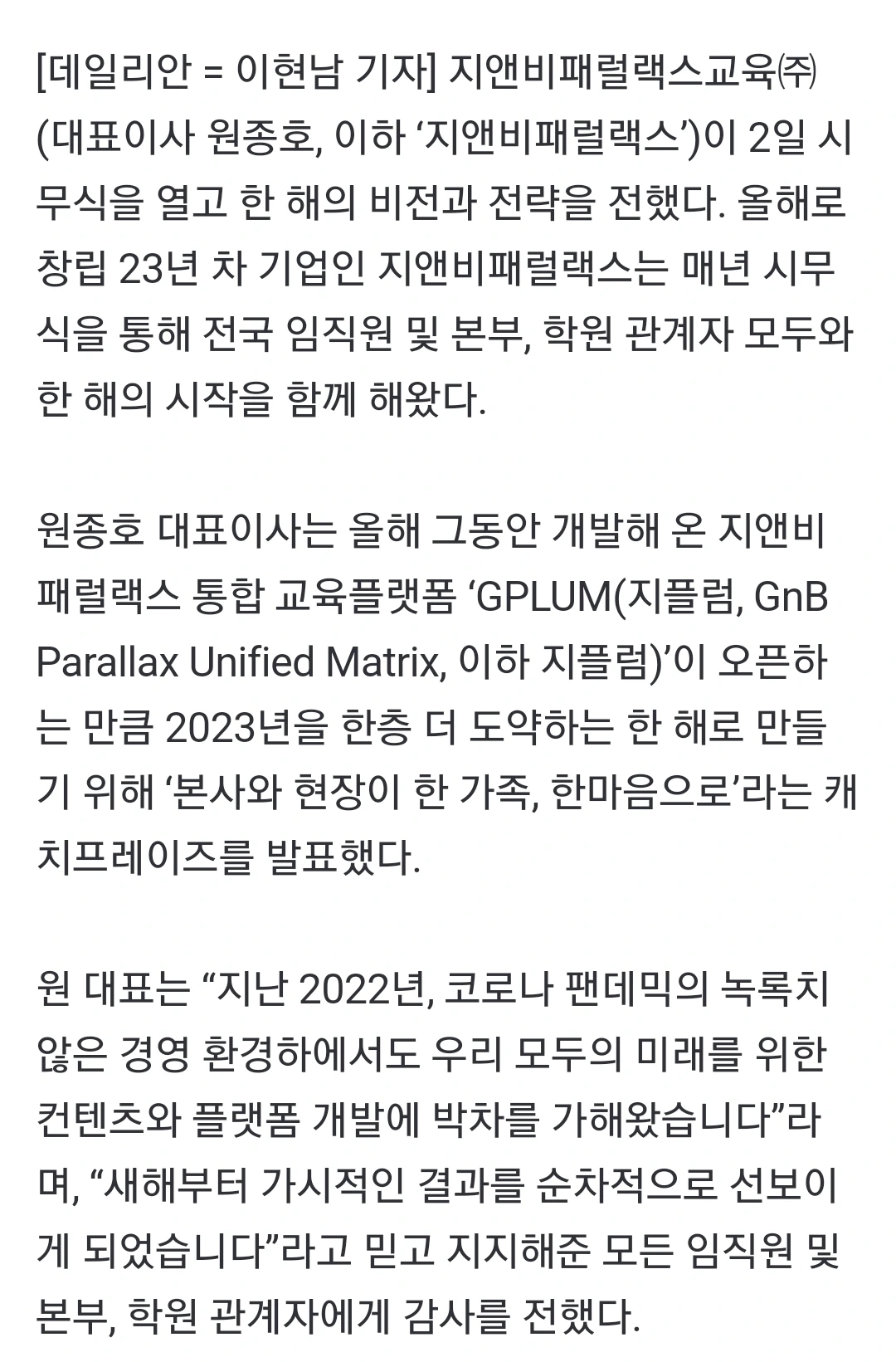지앤비패럴랙스교육 2023 시무식"한 가족,한마음으로"