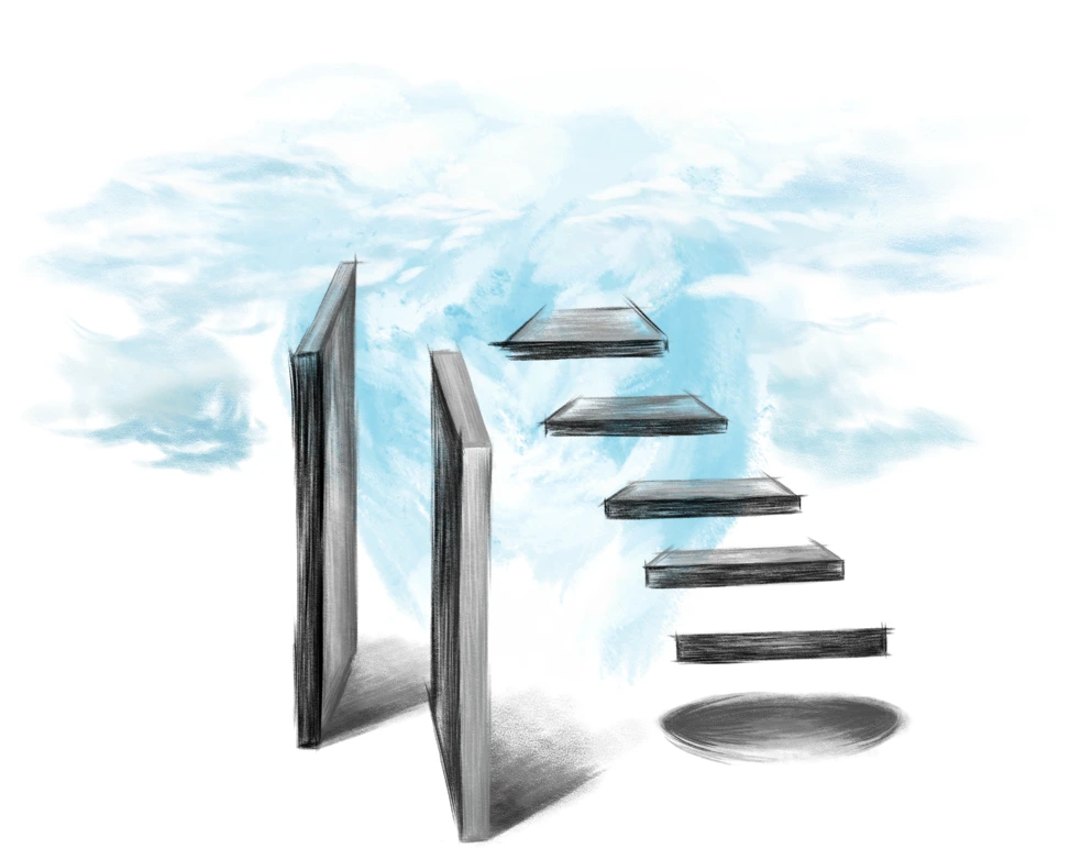형성하며 하늘로 승천하는 모습으로 추상화는