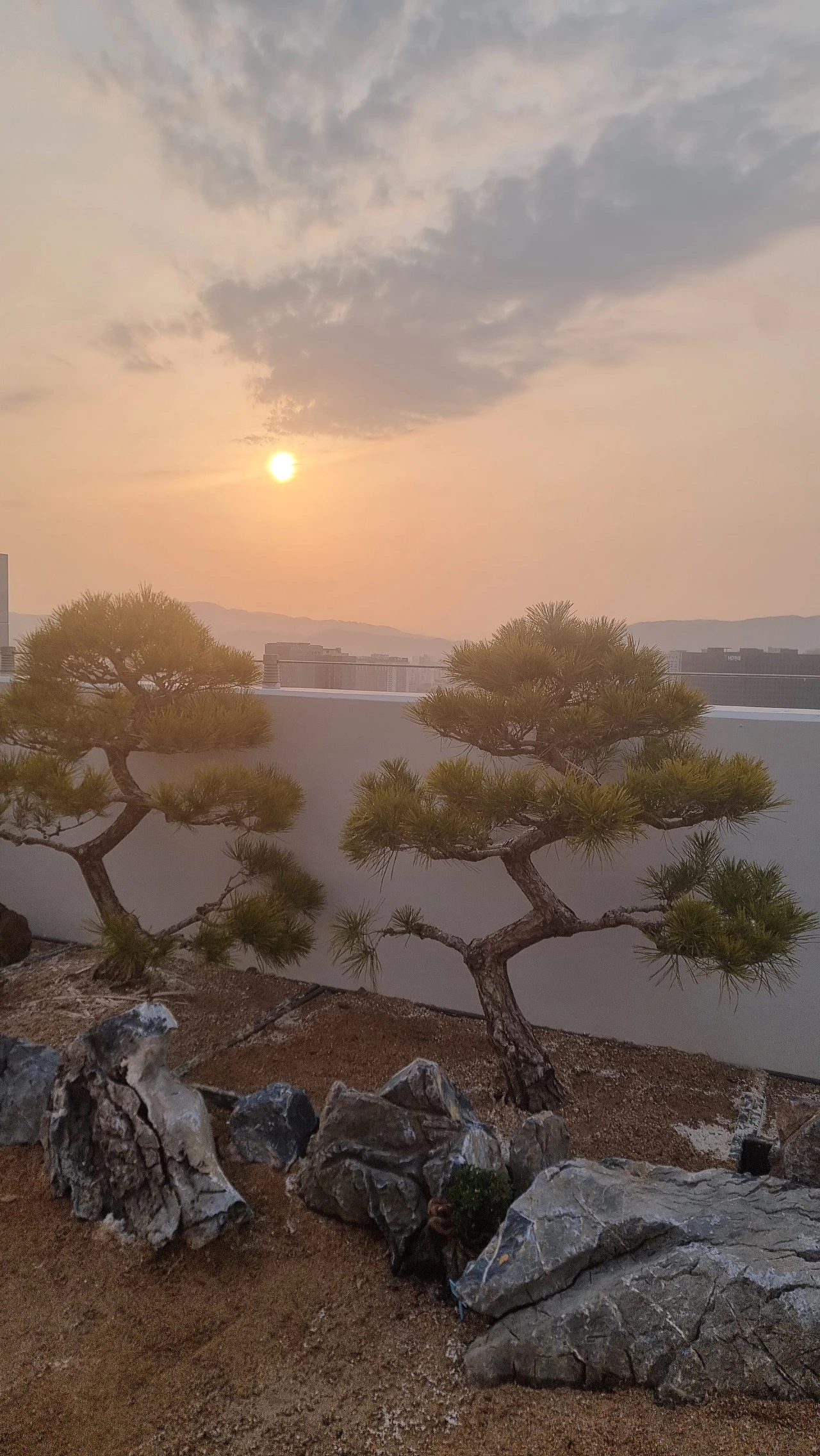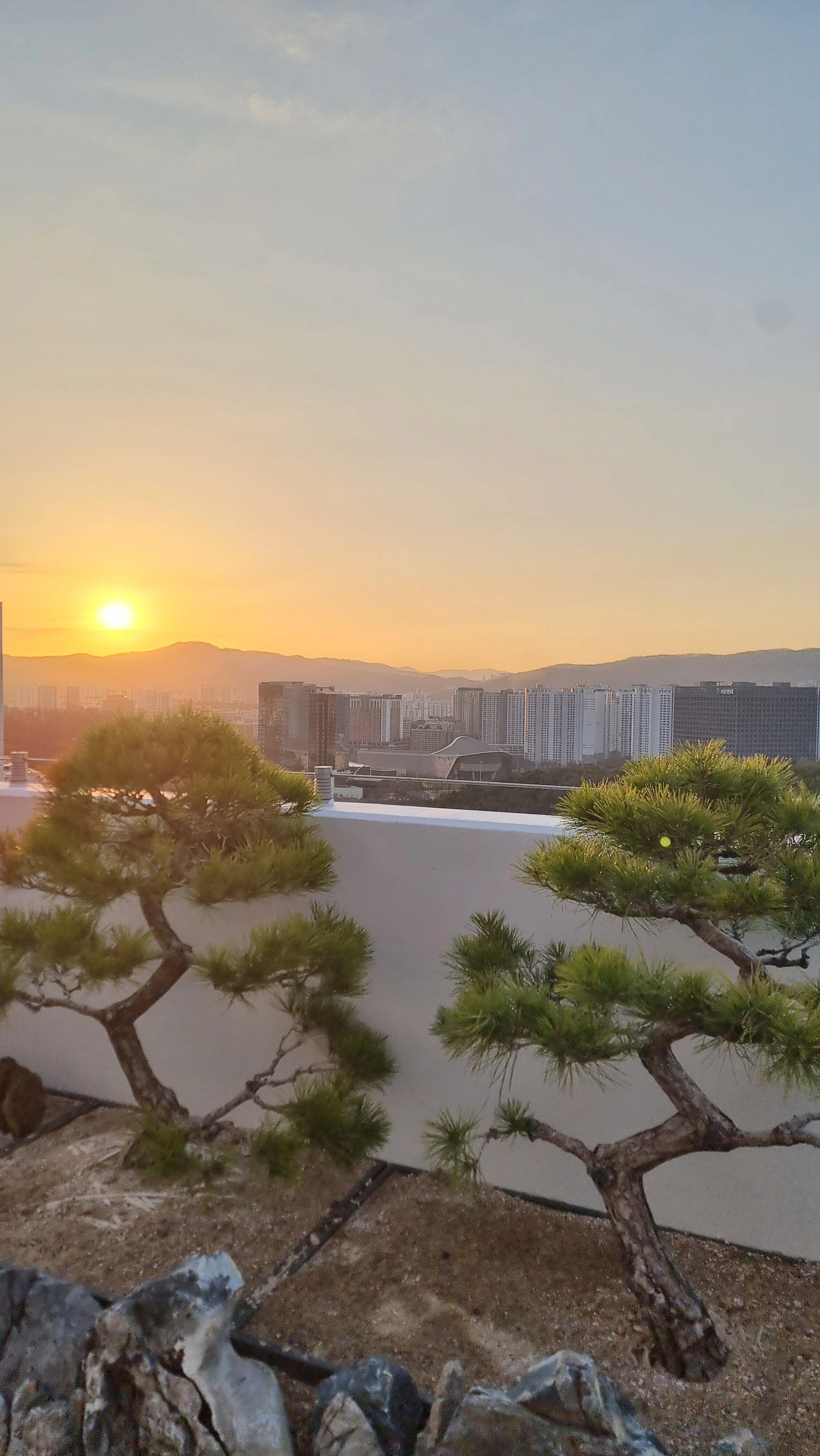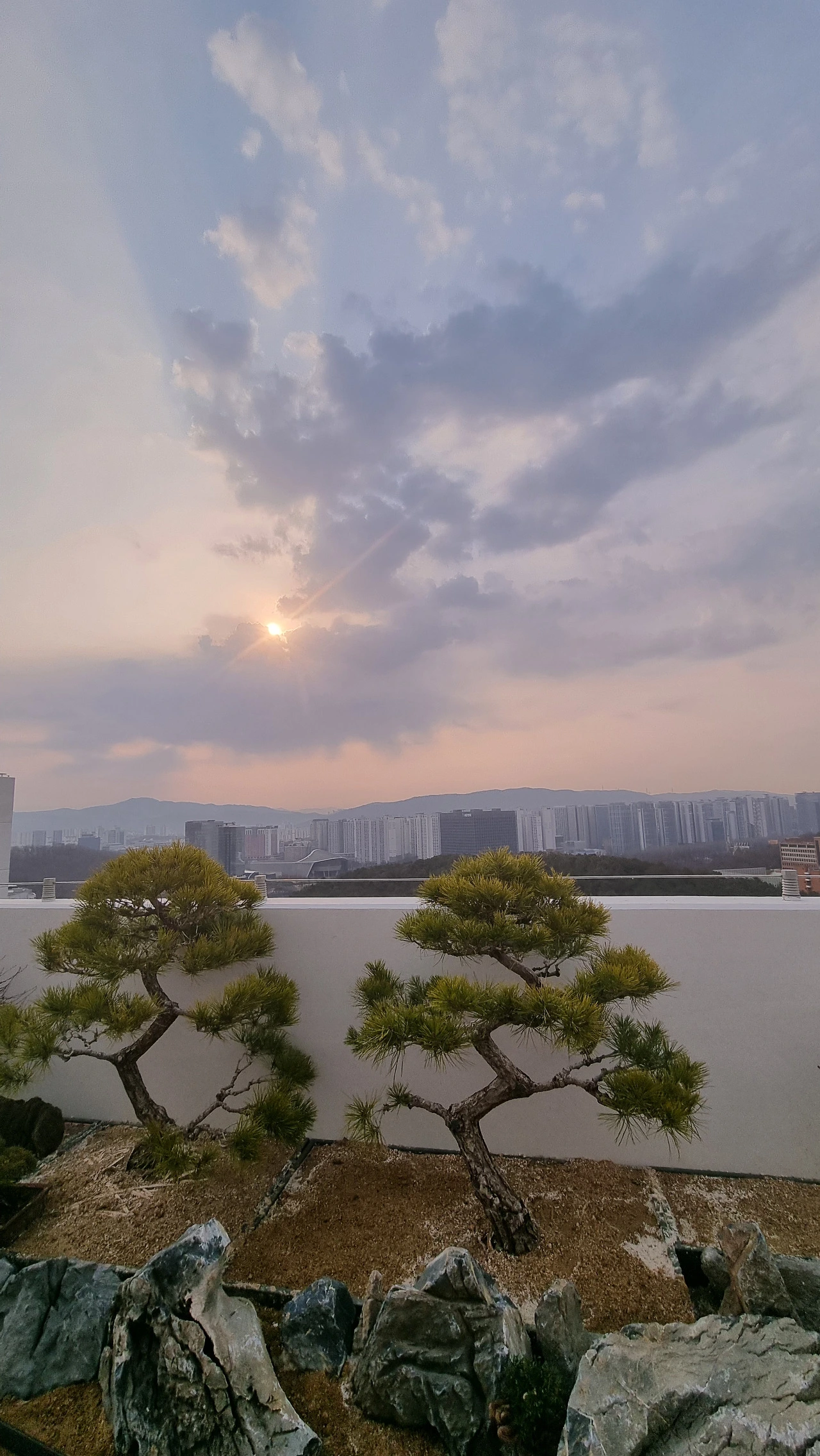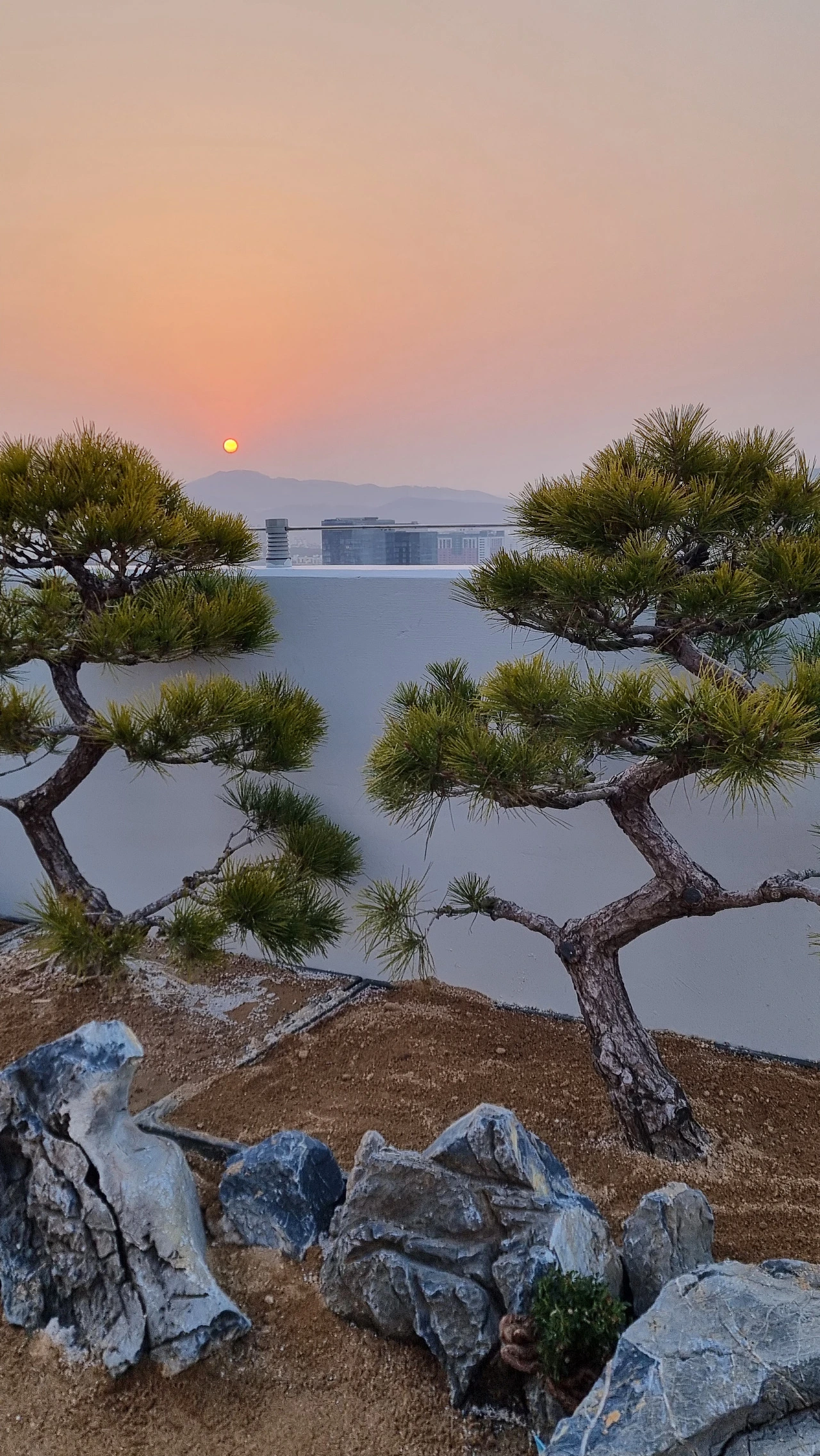 사시사철 늘 푸르른 소나무 두 그루
