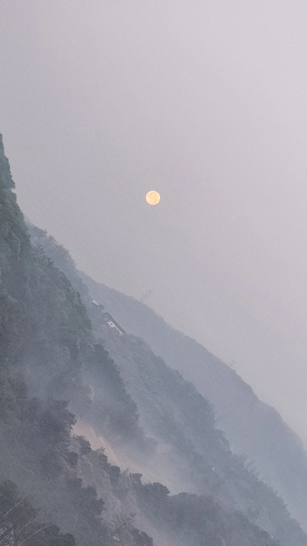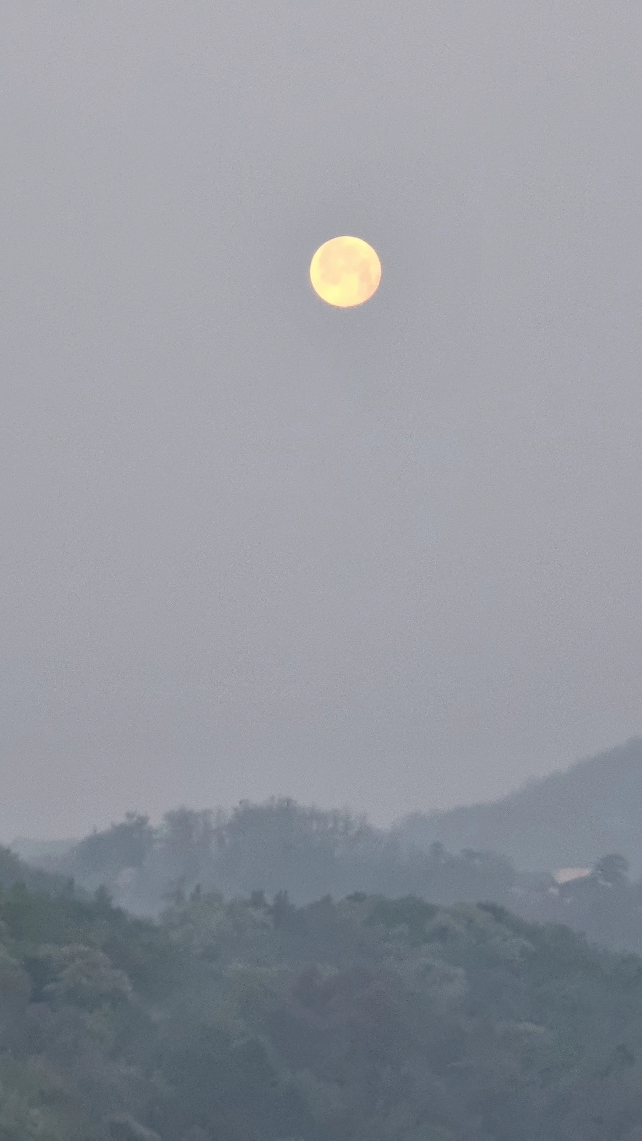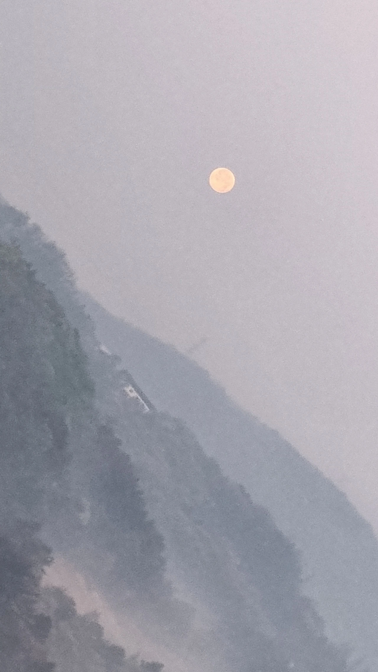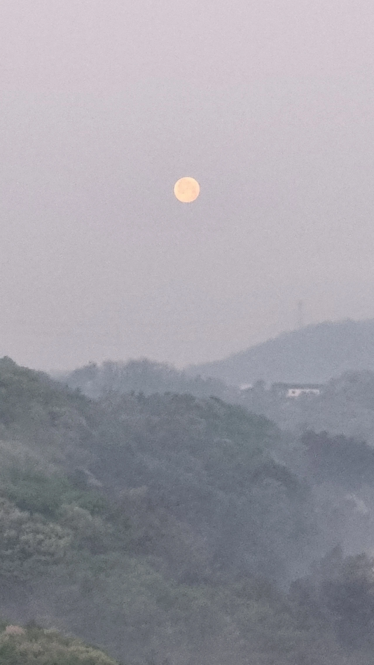 흐릿한 산야를 배경으로 보름달이
