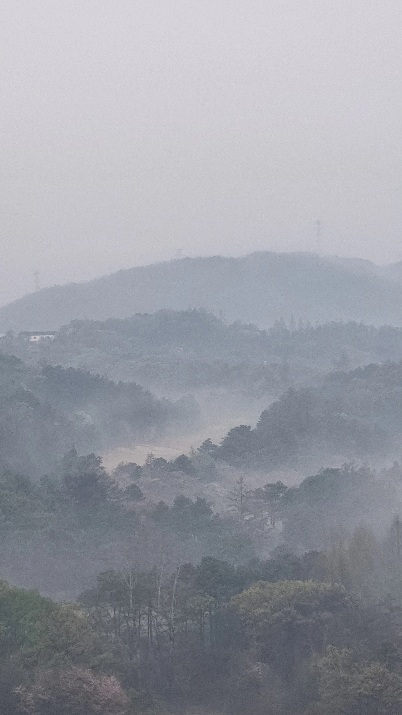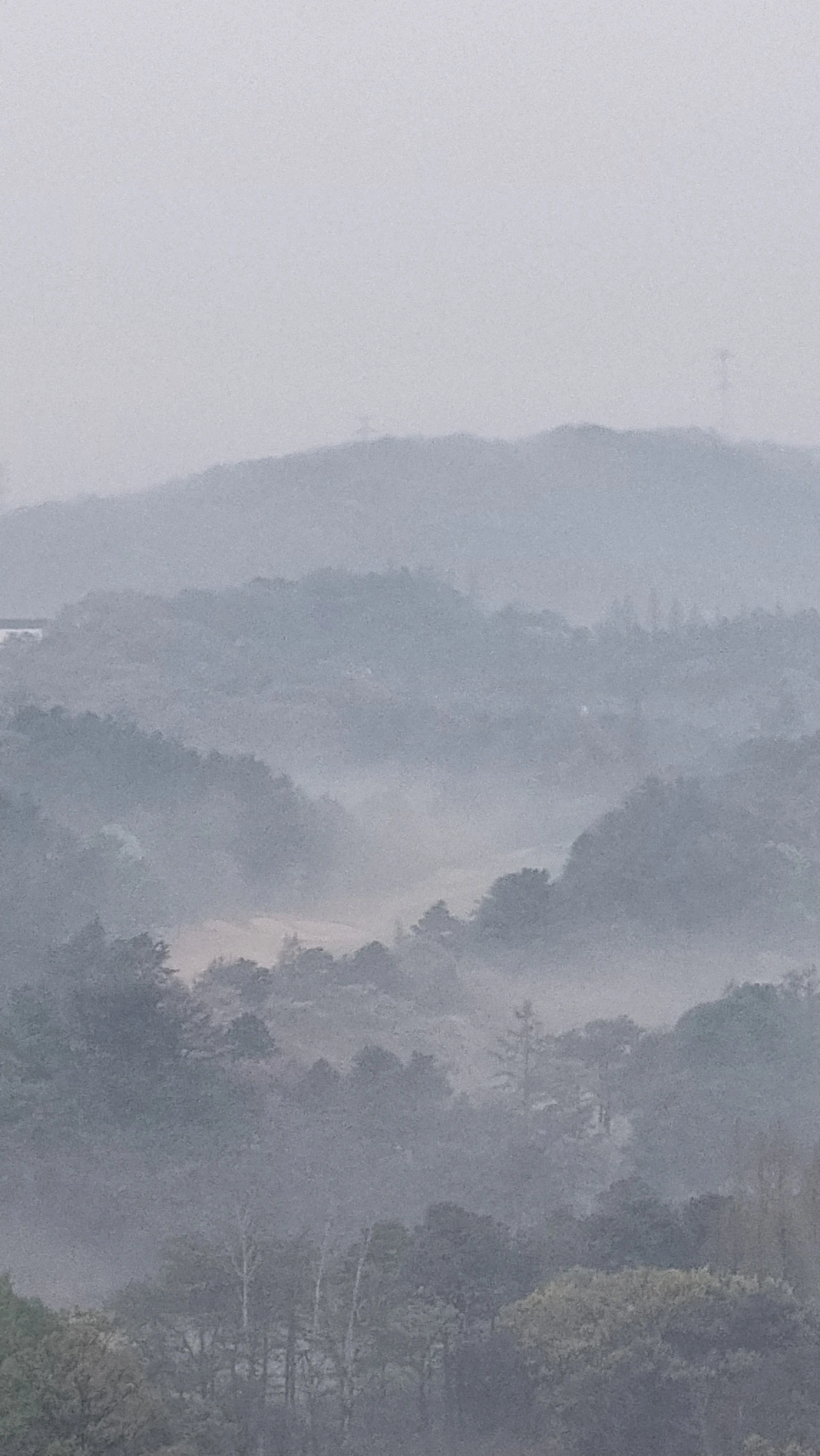 아침을 마다하고 산야에 걸쳐 있네