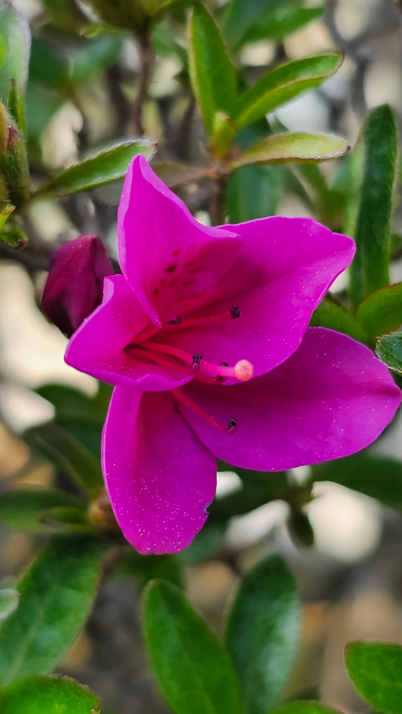 우리집 철쭉 꽃망울은 이제야 피어오르네