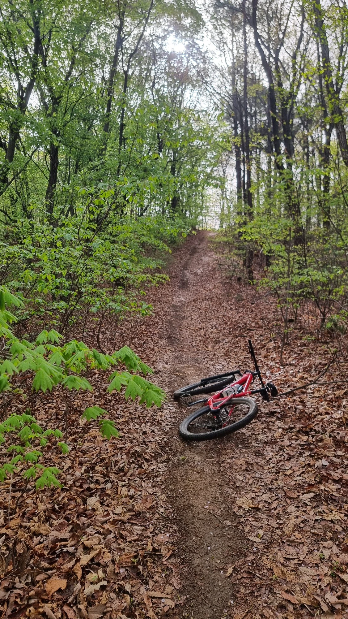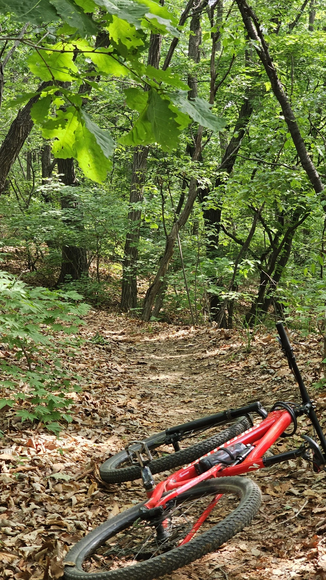산악자전거를 끌고 산을 올랐다 힘들면 끌바를