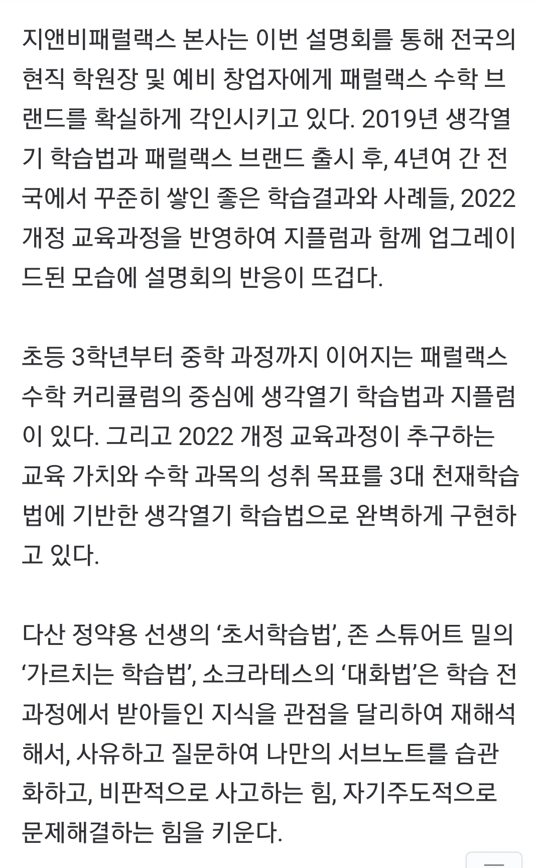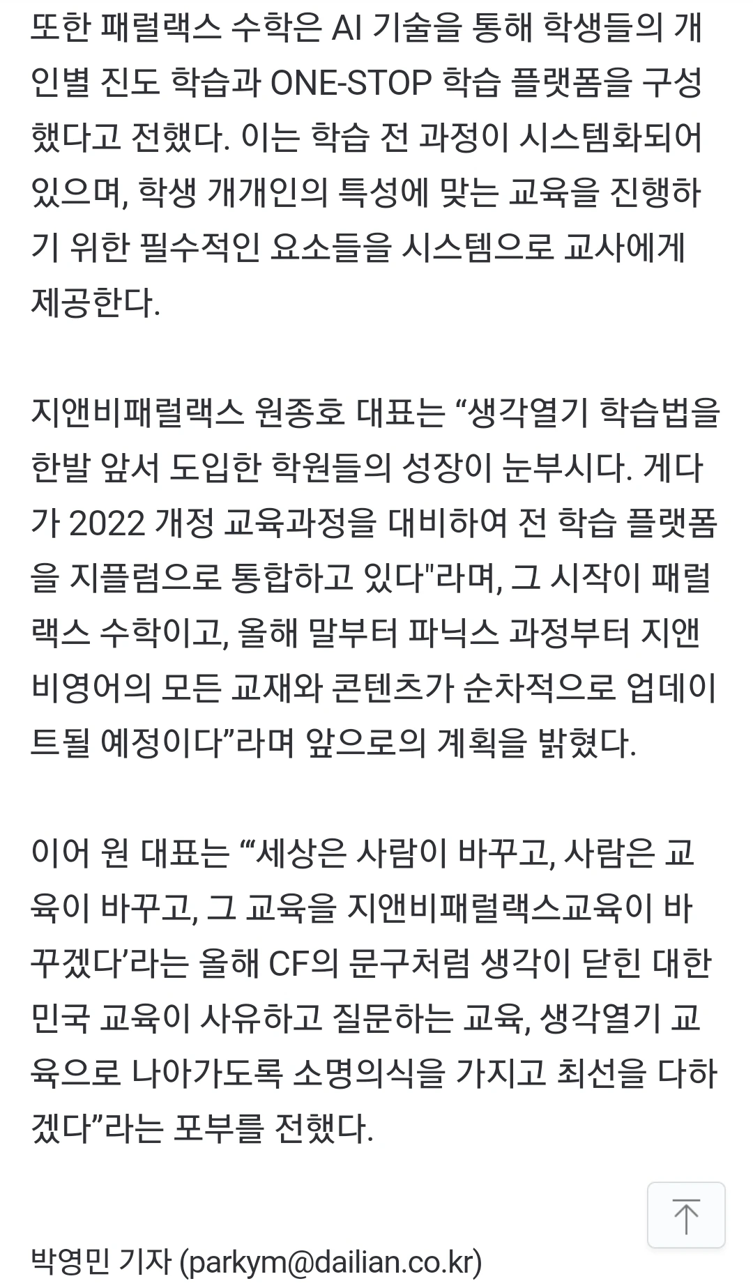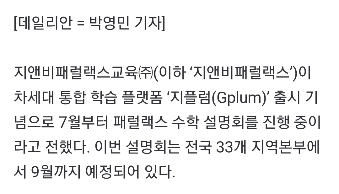 지앤비패럴랙스교육,차세대 생각열기 학습 풀랫폼 출시