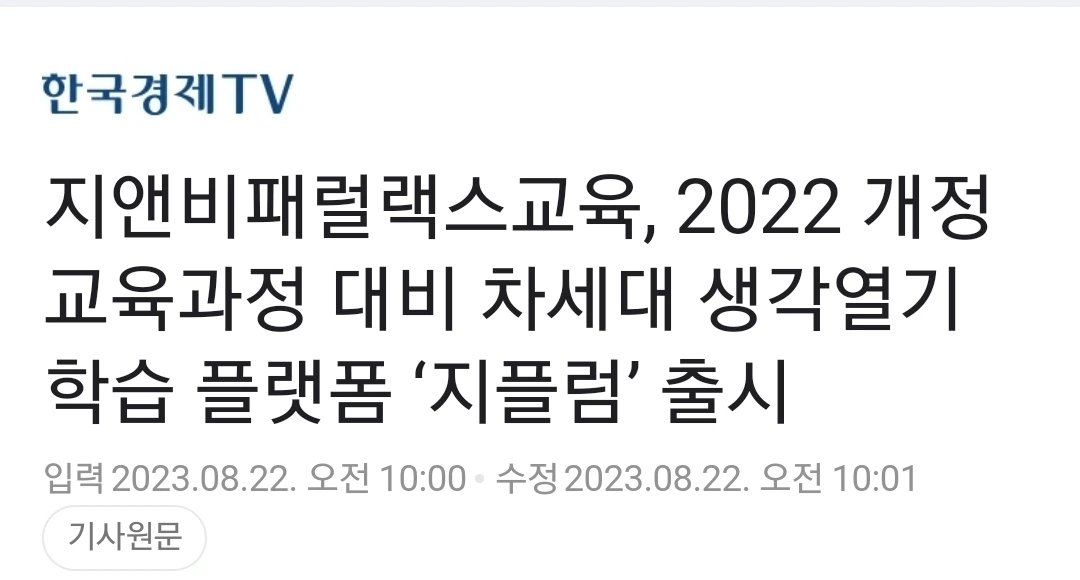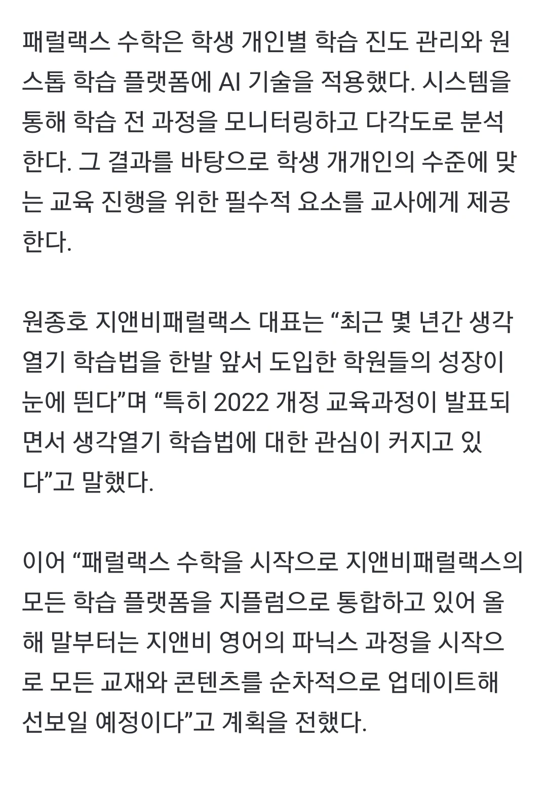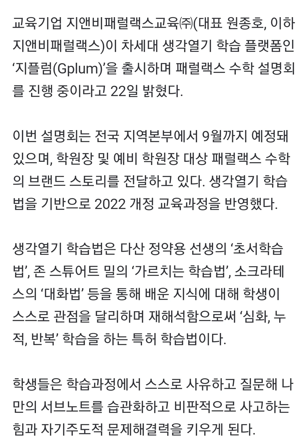 지앤비패럴랙스교육, 생각열기 학습 플랫폼 '지플럼'출시