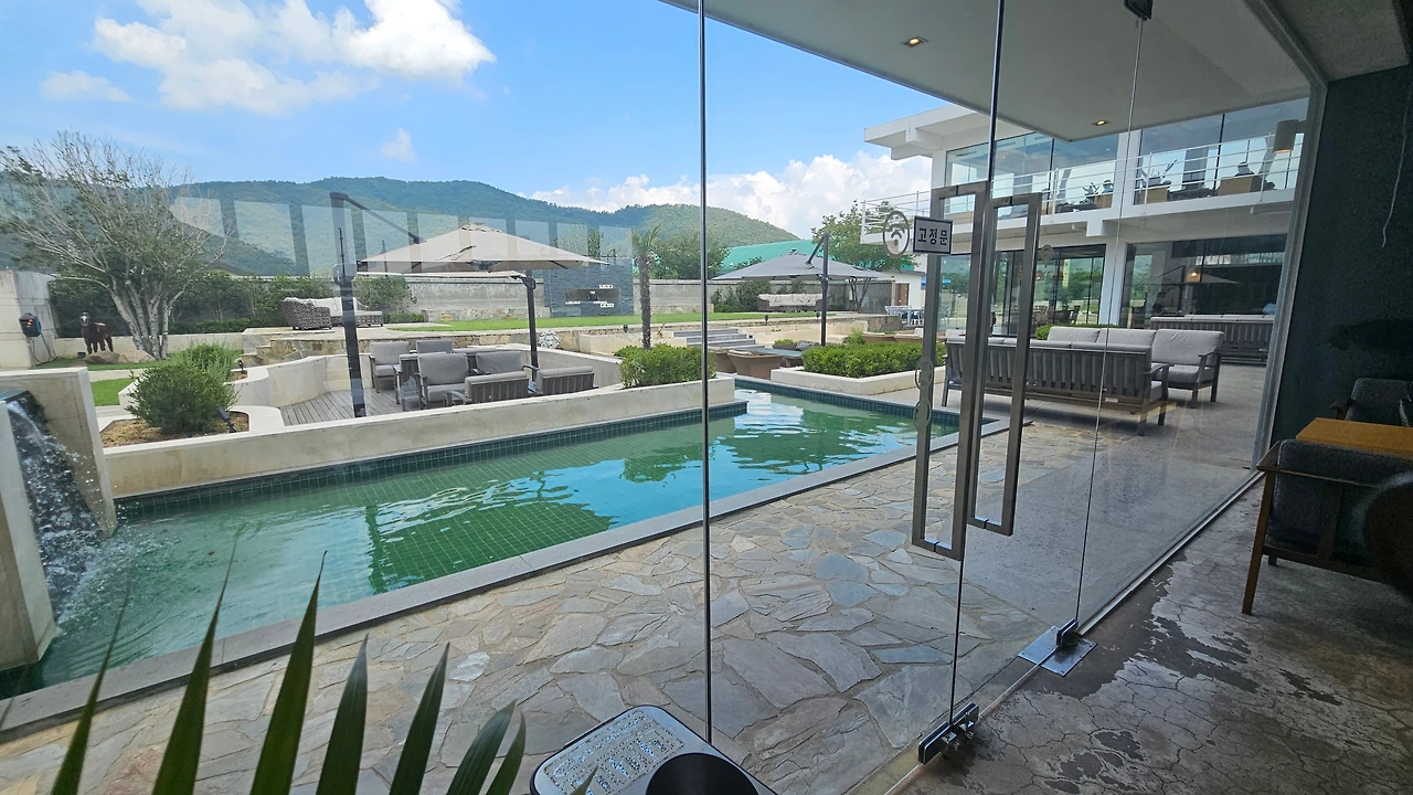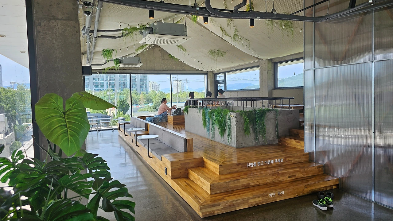 카페 대지규모를 넉넉히 하고 사방을 통유리