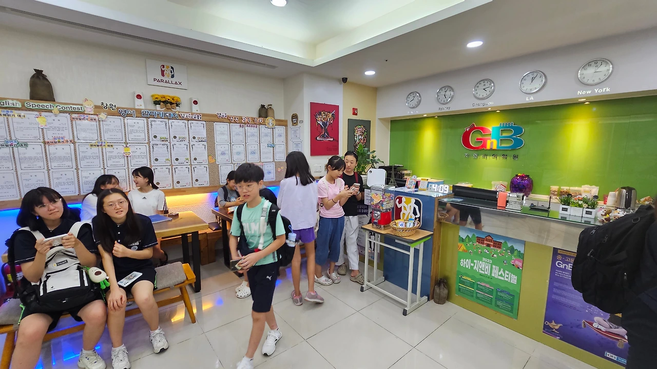 수업 대기 중인 지앤비패럴랙스 중등부 학생들과 한 컷