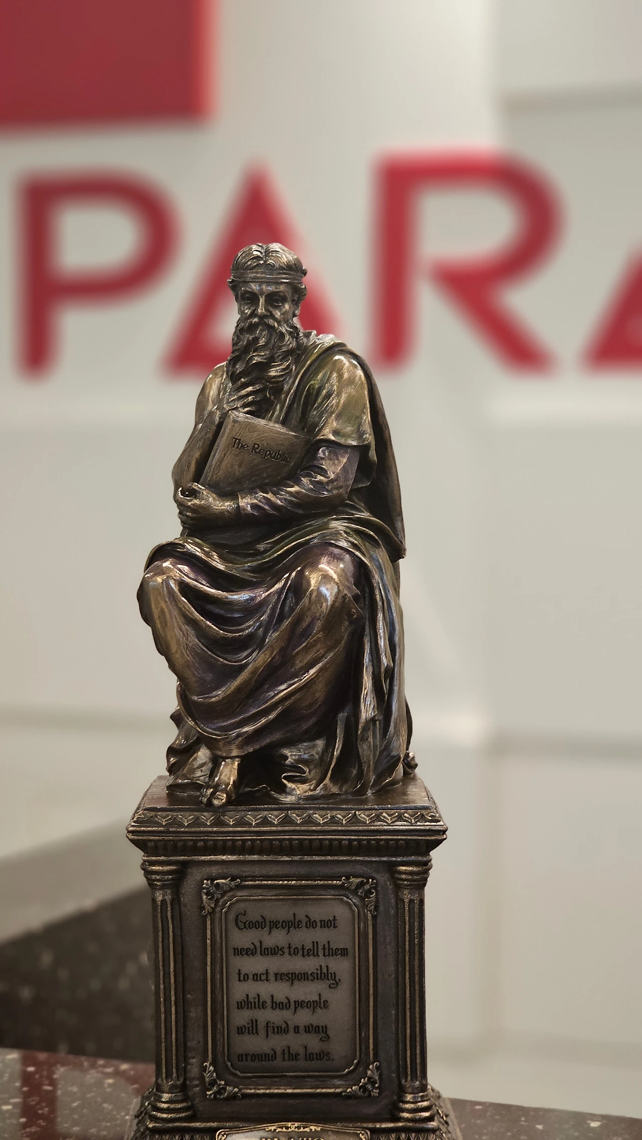 Plato Won 作,패럴랙스 수학 그리스 아테네 연수팀이 선물해 준 플라톤 동상 "무지는 모든 악의 뿌리와 줄기다"