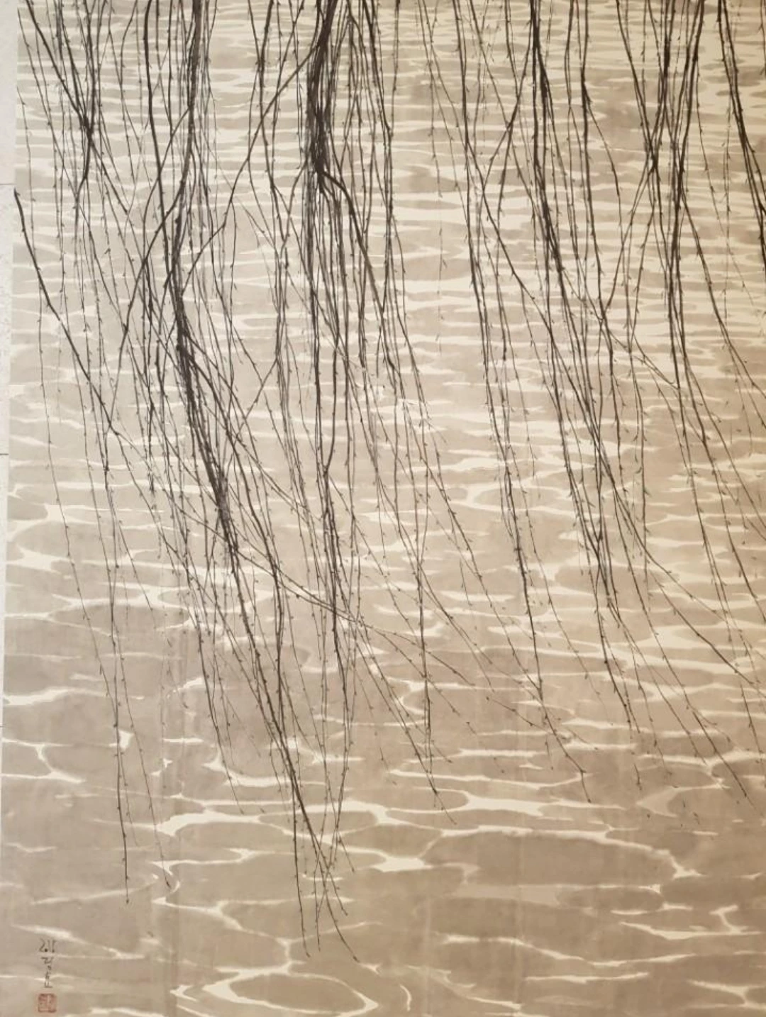 임효 作,유유(柳流,버드나무 유,흐를 유),임효 형 작업실이 있는 남한강 유역, 석양 즈음에 흐느적거리며 피어있는 버드나무를 그린 작품