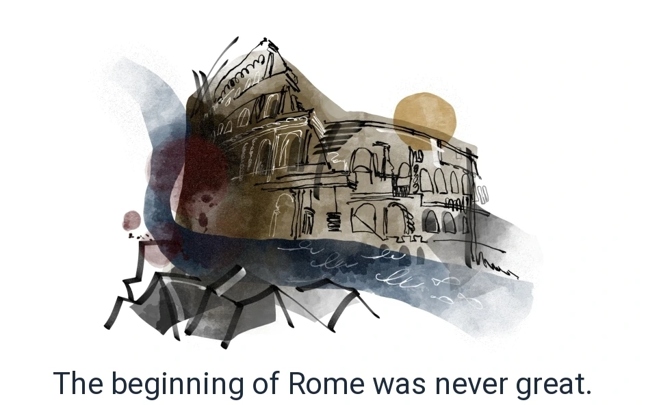 로마의 건국 역사를 콜로세움과 연결해서 은유적으로 표현한 추상화