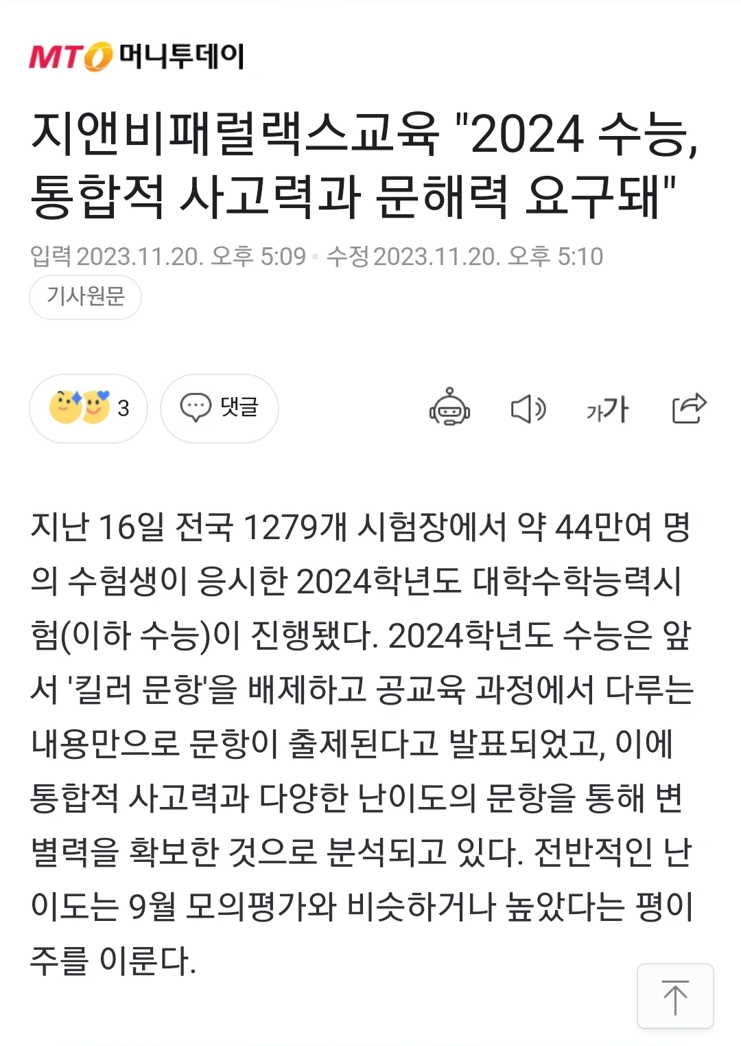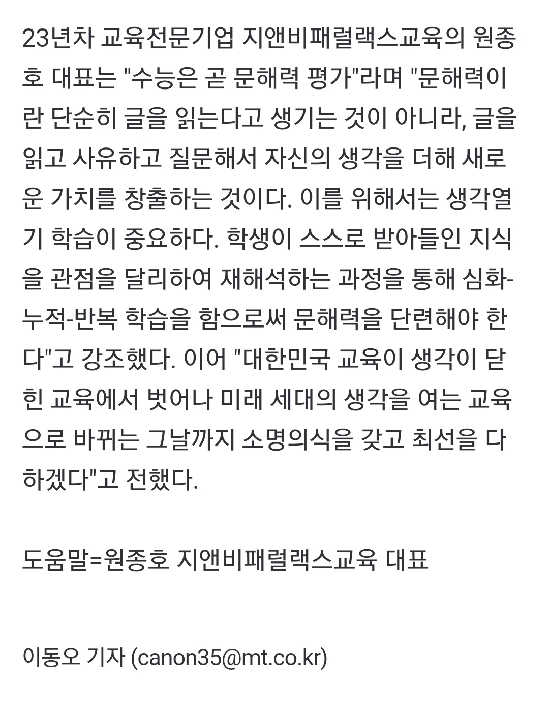 생각열기 학습과 문해력의 중요성을 강조한 2024 수능