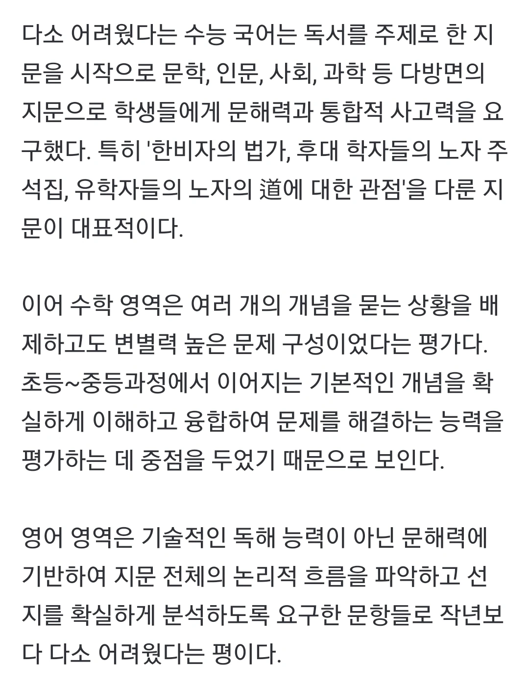 2024년 수능,통합적 사고력과 문해력 요구돼