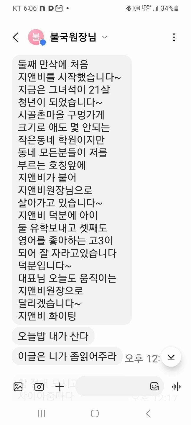 불국 원장님과 경주 박 본부장님 카톡 내용을