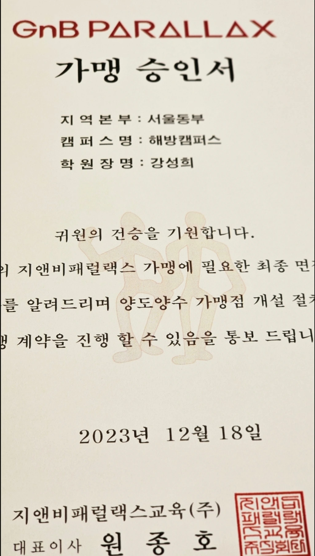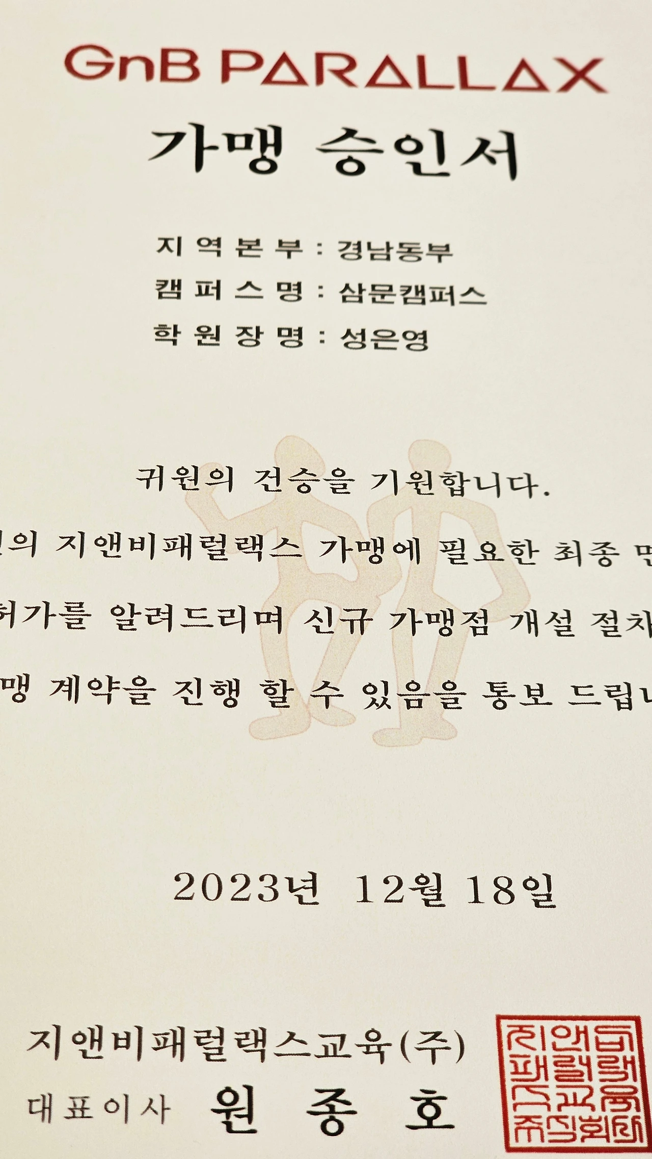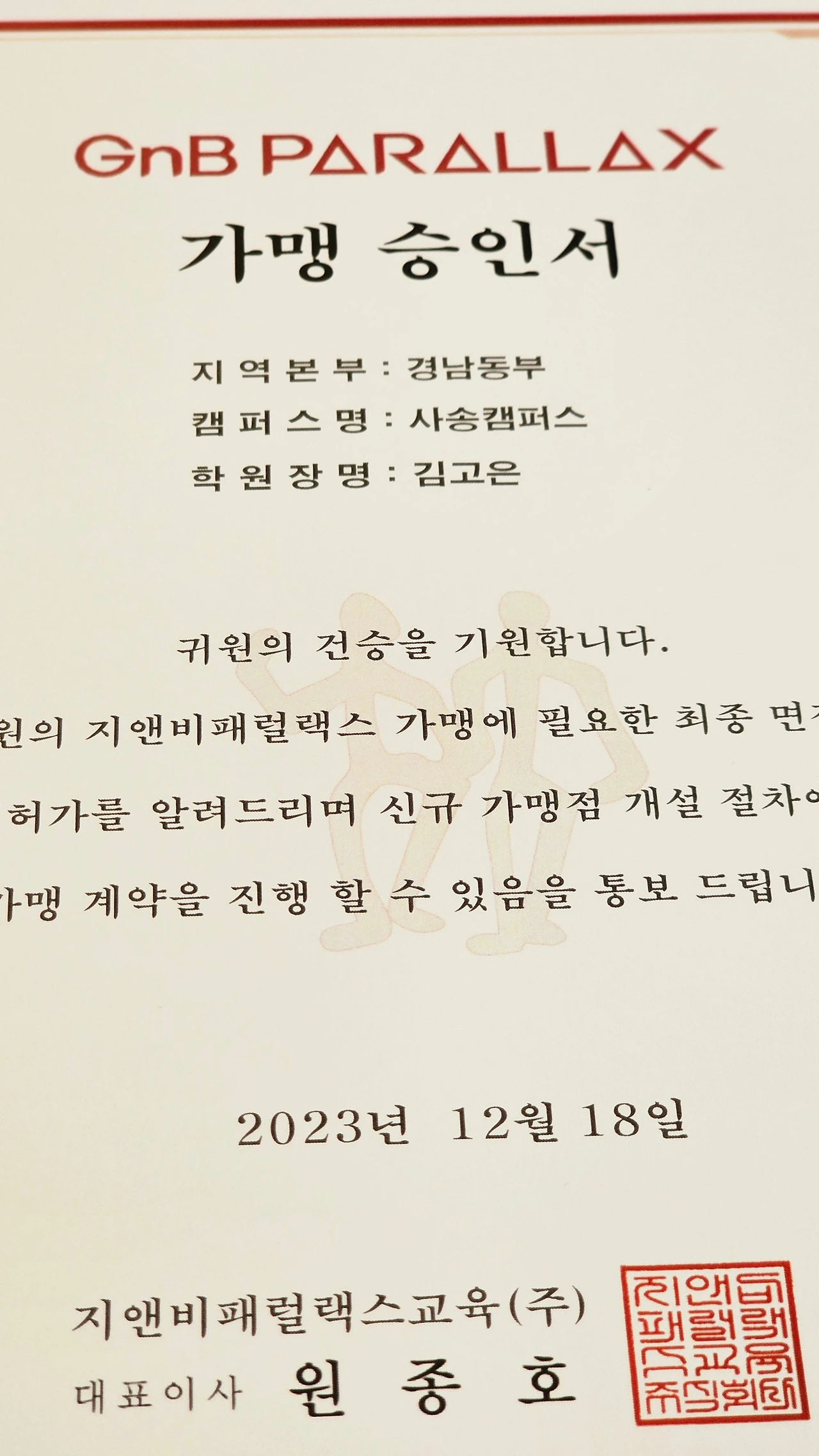 지앤비패럴랙스 가족이 되신 것을 추카드립니다