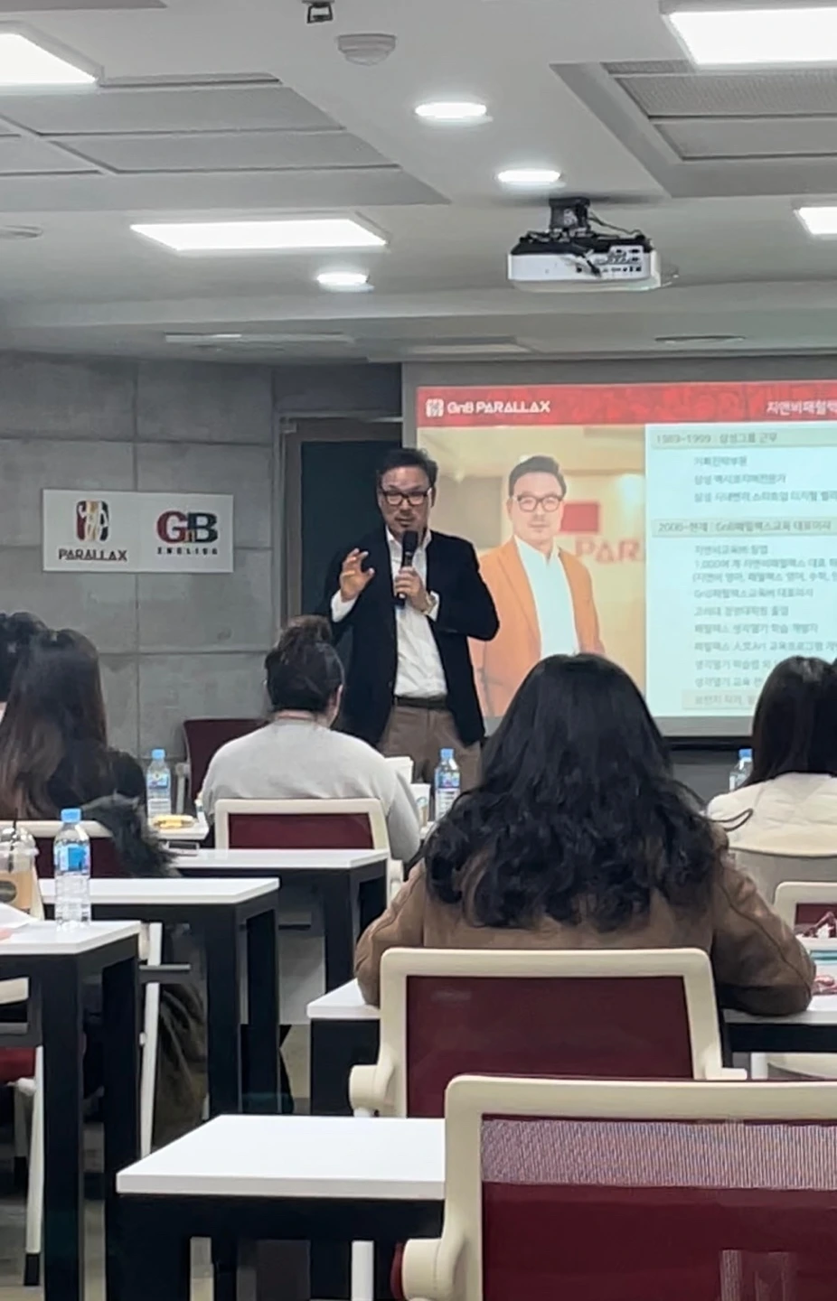 임효 화백의 붓터치에 기존 지앤비 로고의 삼원색을