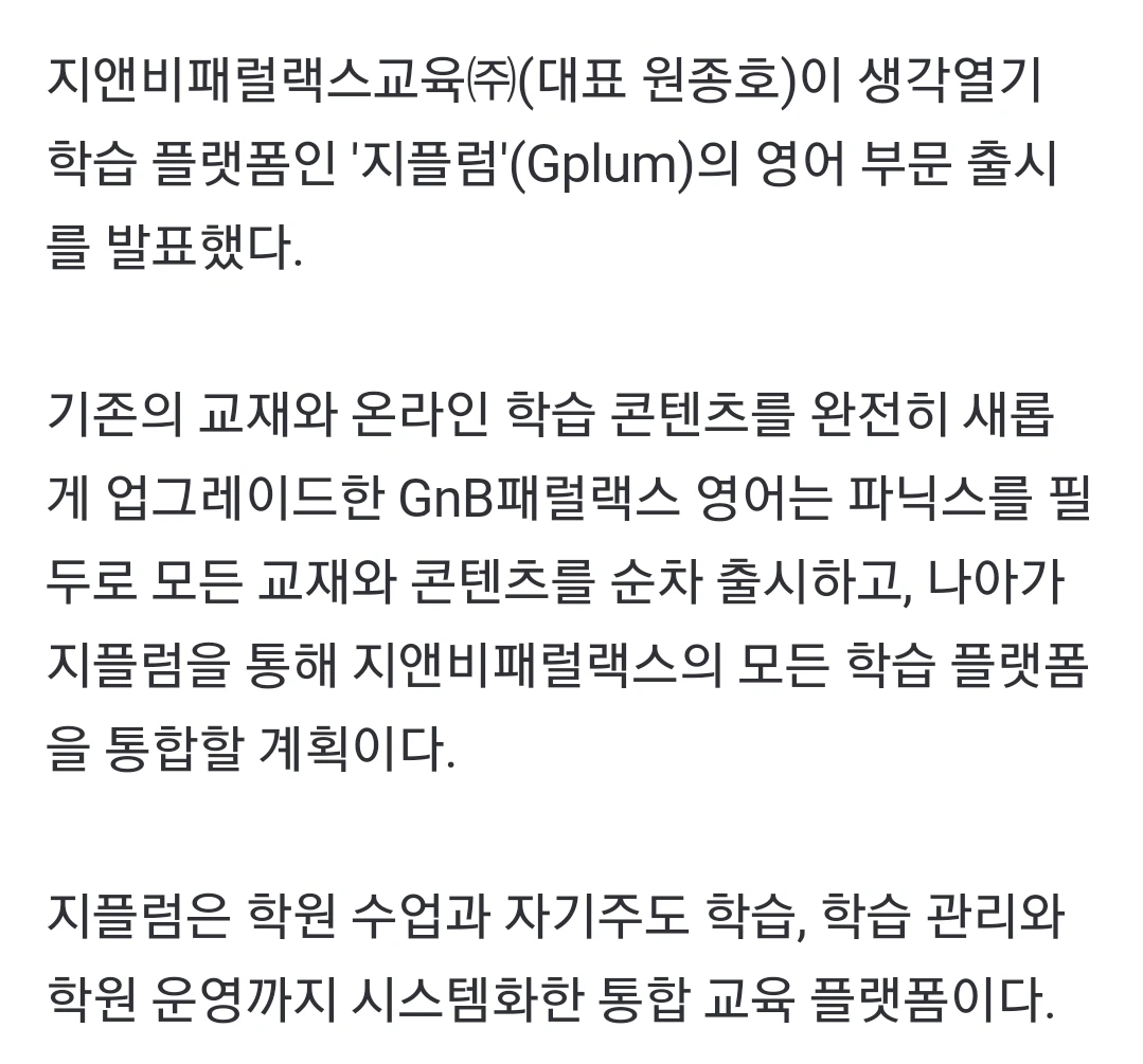 GnB패럴랙스교육,차세대 교육 플랫폼 출시