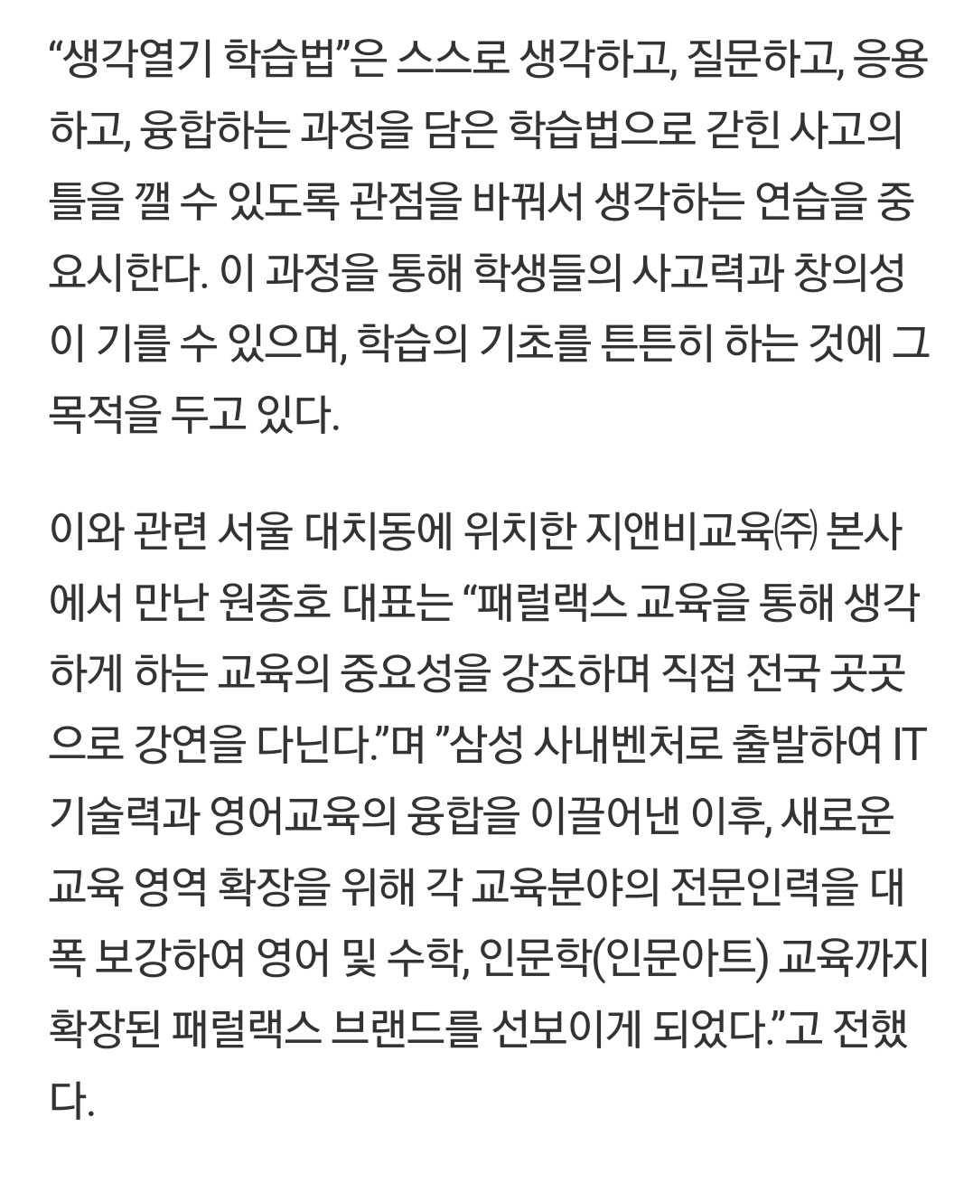 지앤비 교육 생각열기 신문기사
