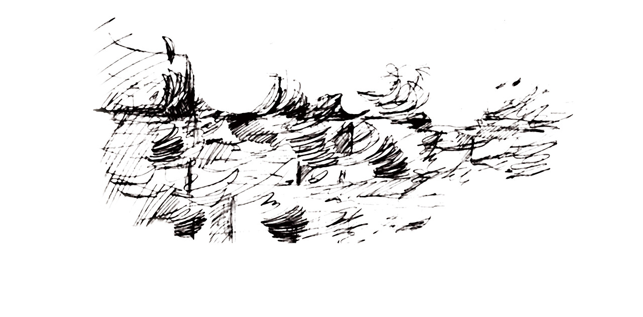 휘감아 도는 스케치 그림 조각으로 표현하였다.