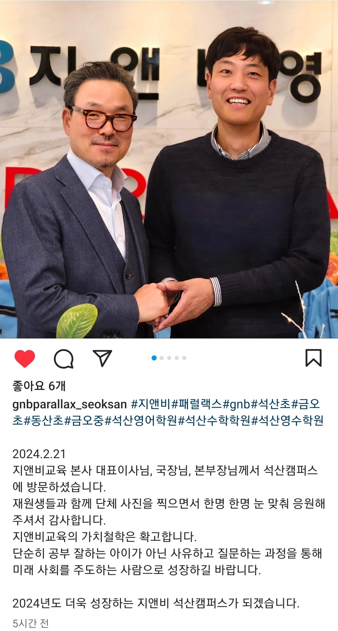 혁신하는 선도학원으로 더욱 성장하길 기대하고