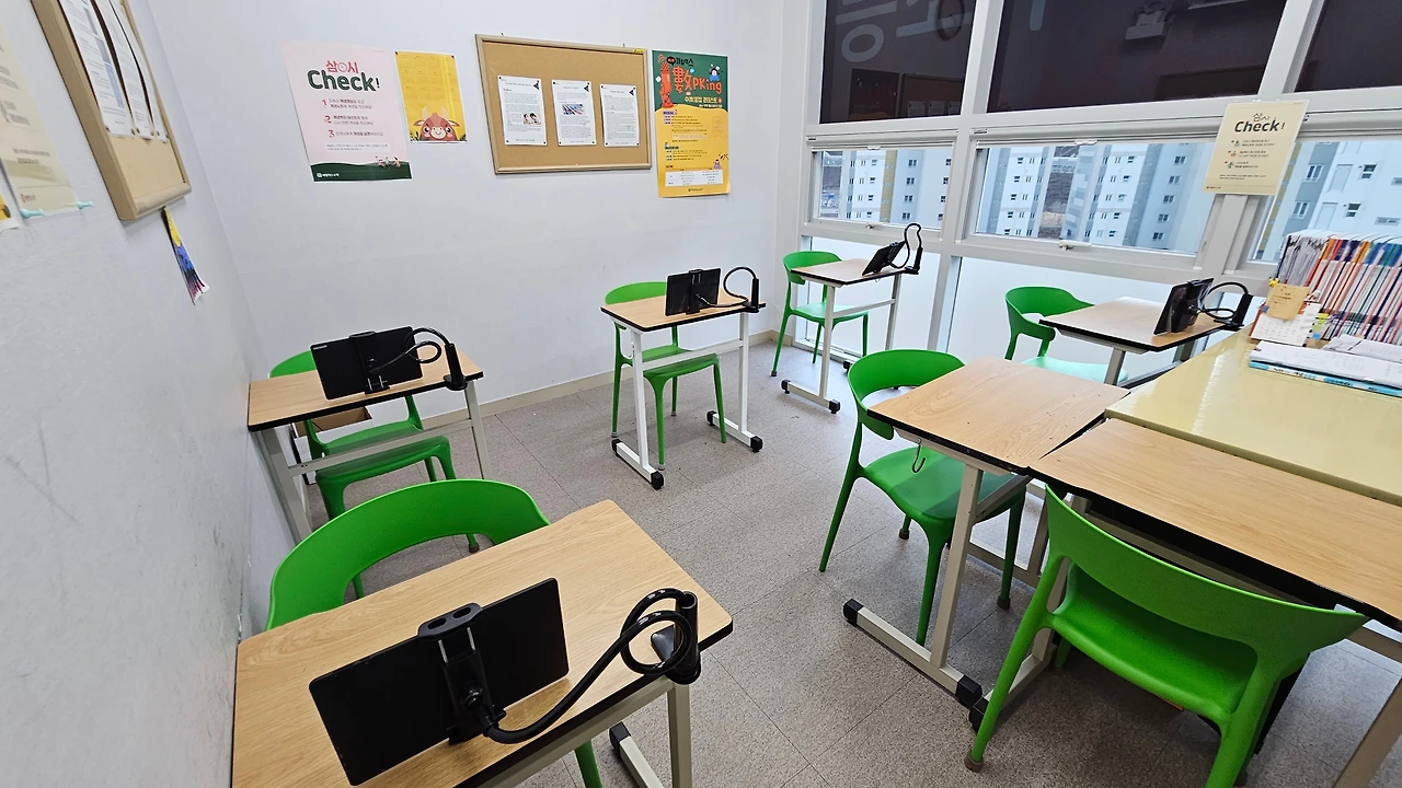 책상마다 구비된 태블릿,패럴랙스 수학 교실