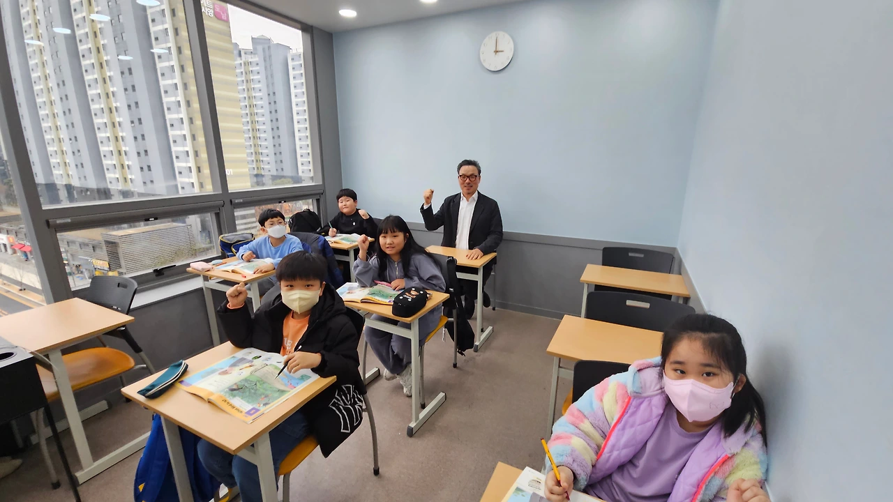 아이들과 학원장님의 밝은 표정에서