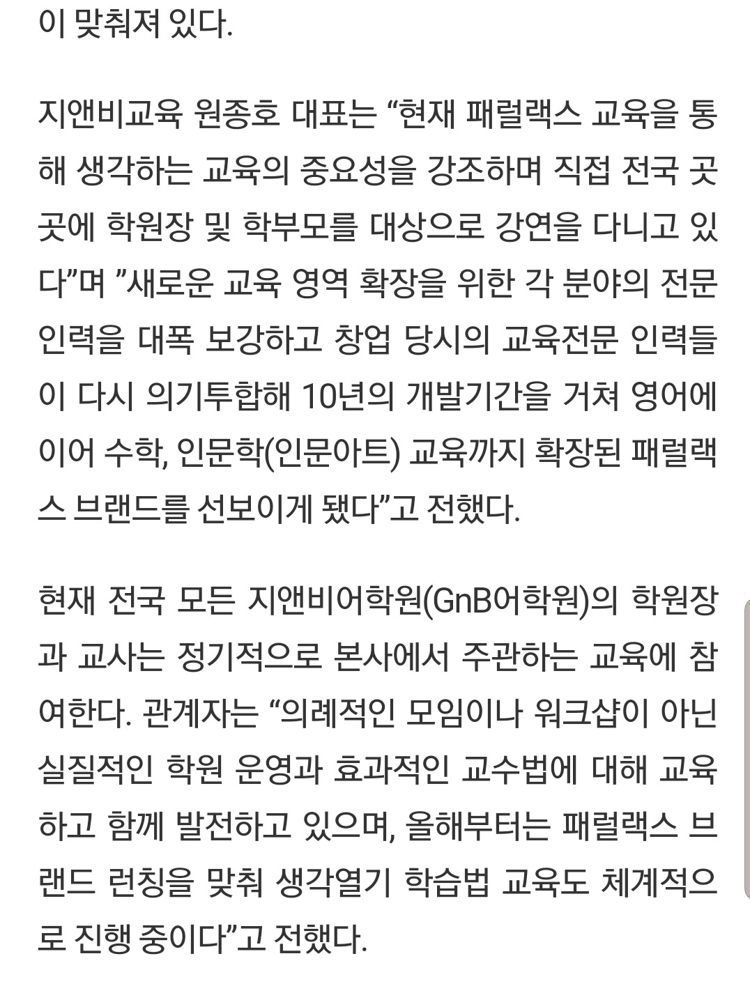 지앤비 교육 신문 기사