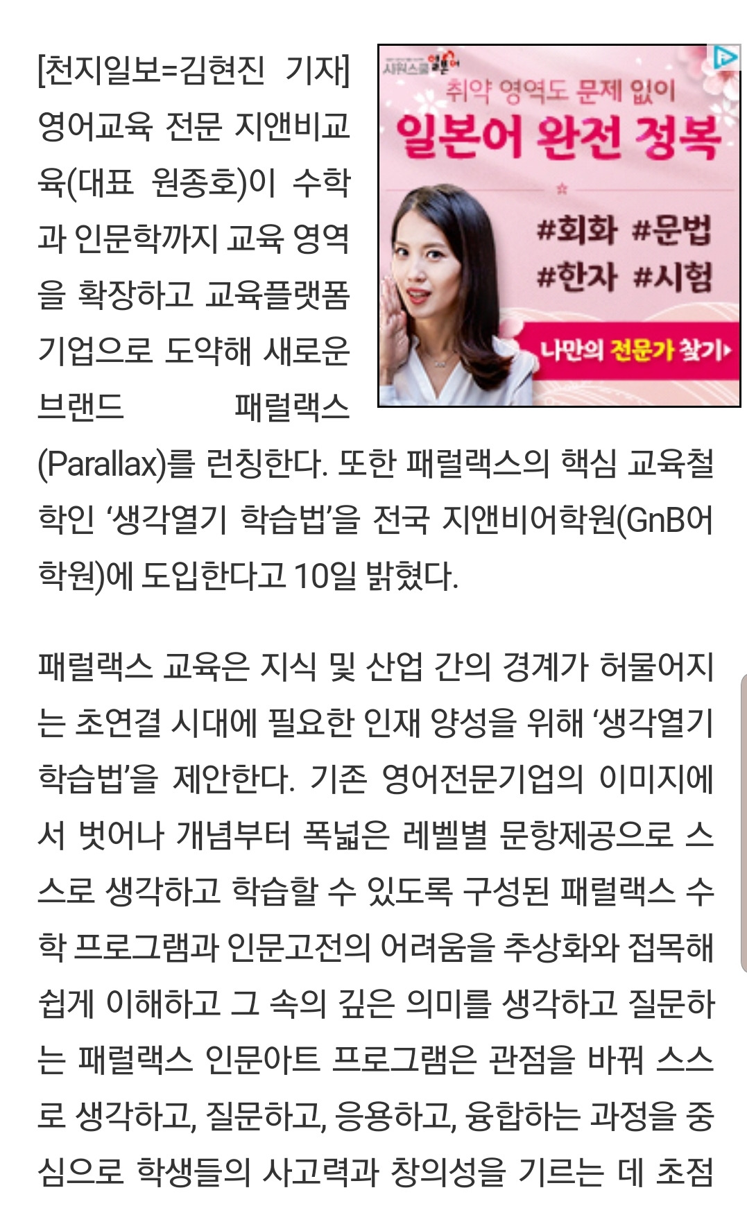 지앤비패럴랙스교육