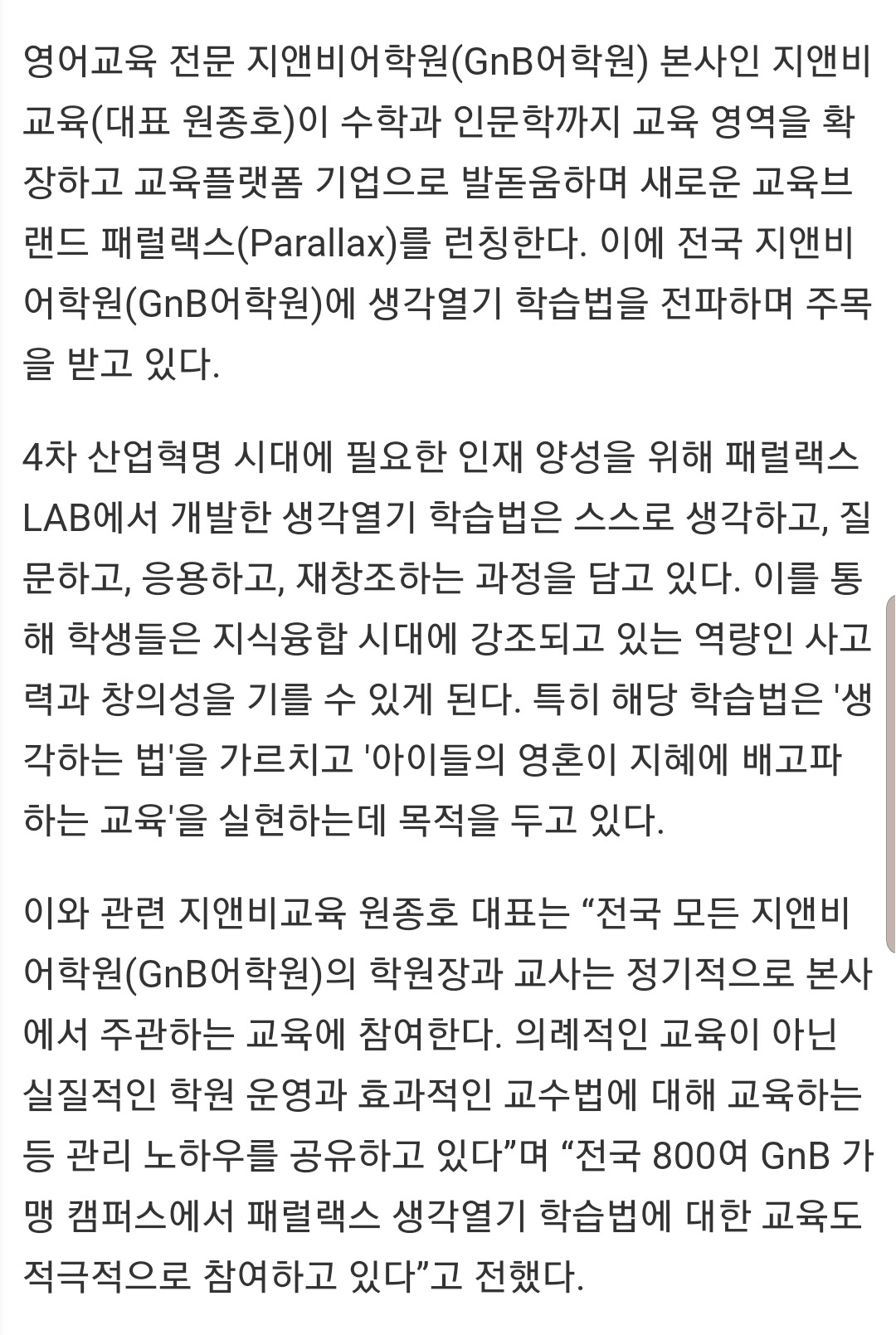 지앤비패럴랙스교육