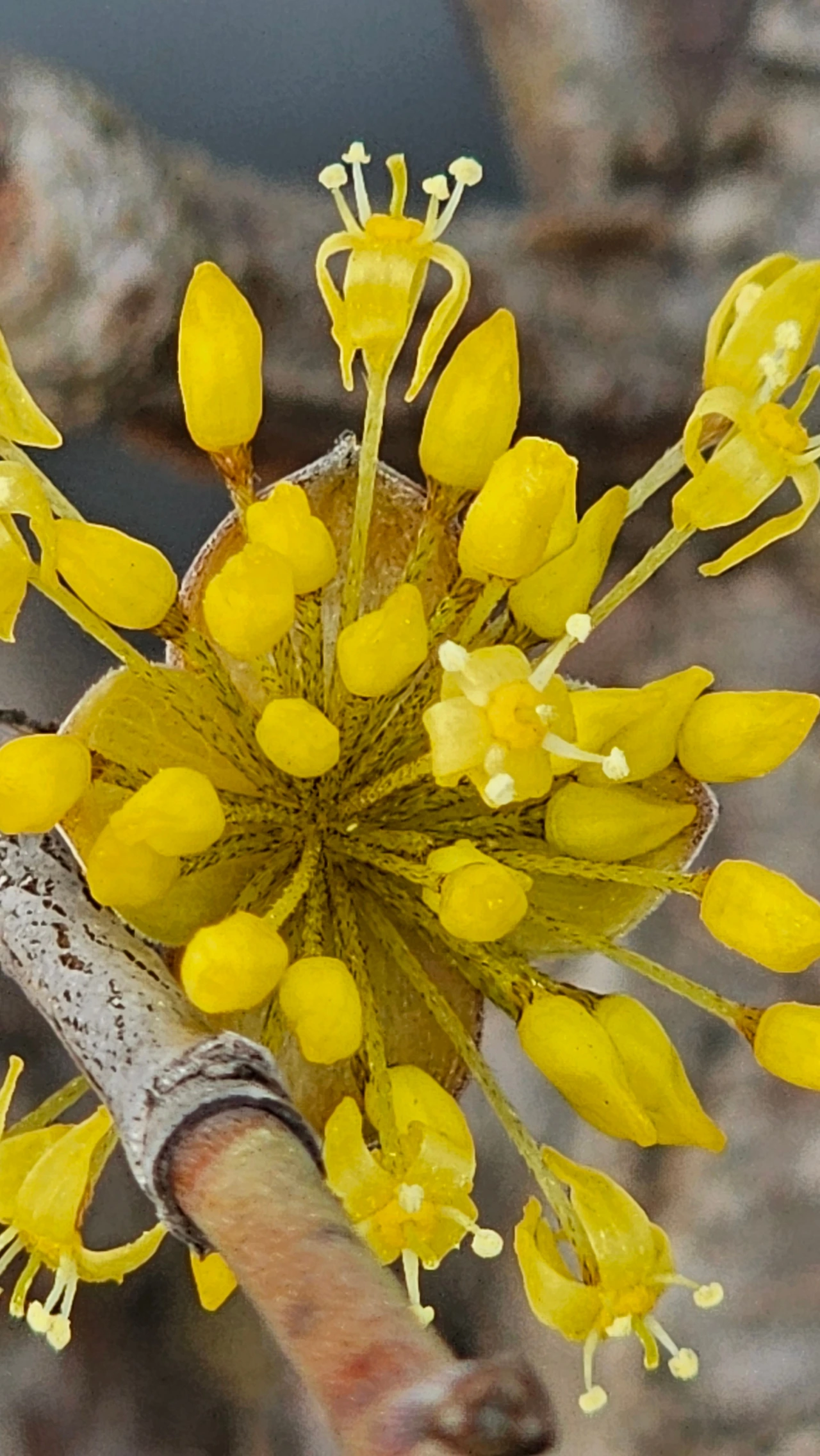 Plato Won 作,산수유도 그냥 보면 밋밋한 꽃이나 자세히 보면 찬란한 꽃이다.