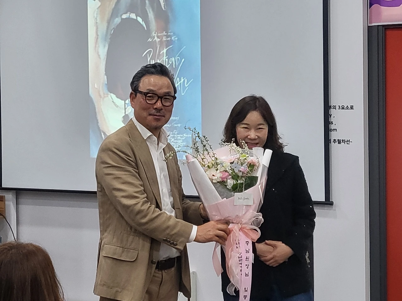 차암캠퍼스 원장님께서 학원장님 대표로 꽃다발을 선물해주셨다.
