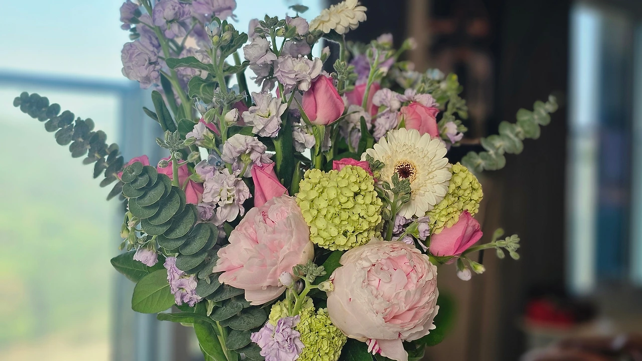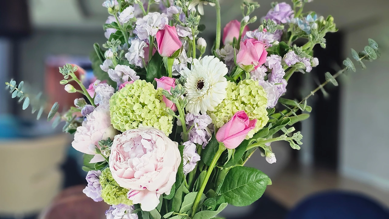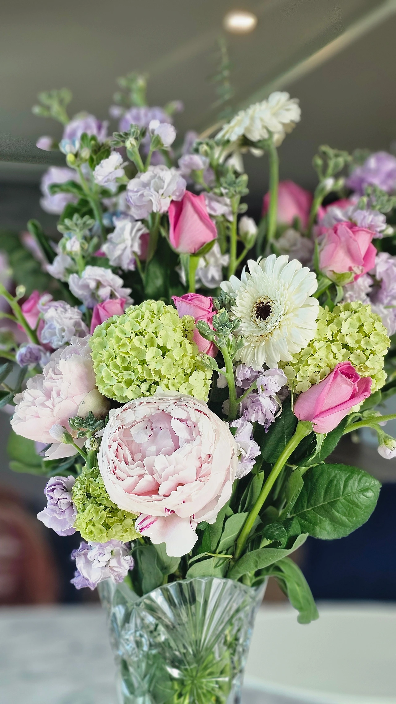 울산 학원장님들께서 선물해주신 꽃다발을 잘 가져와서 꽃병에 예쁘게 담았다.