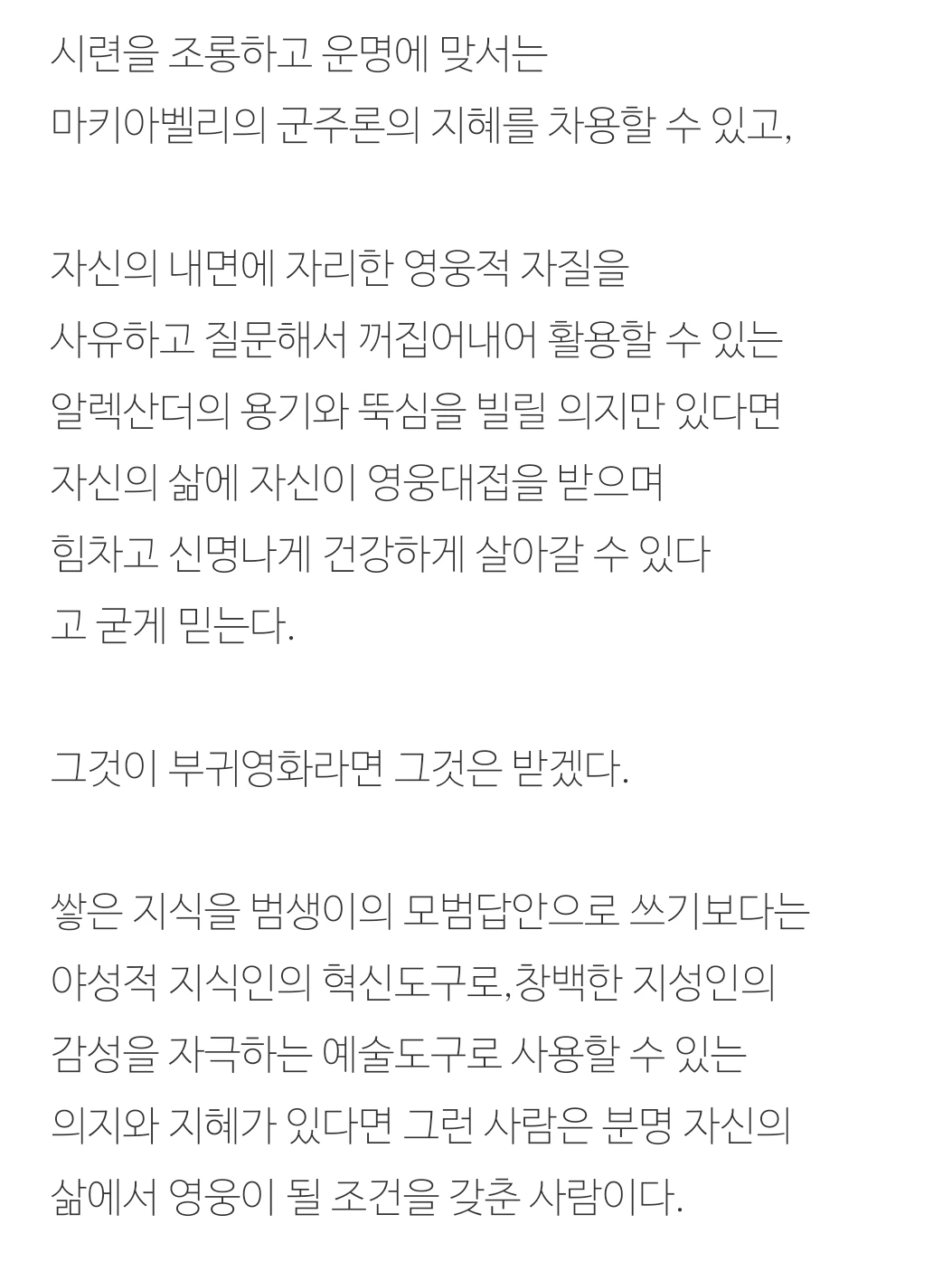 글은 작가에 의해 쓰여지지만 그 글을 사유하고 질문하는 누군가에 의해 서서히 완성되어 간다. 지식이 범생이의 모범답안지에 기여하기보다는 야성적 충동가의 혁신도구이기를 바라며 ~~