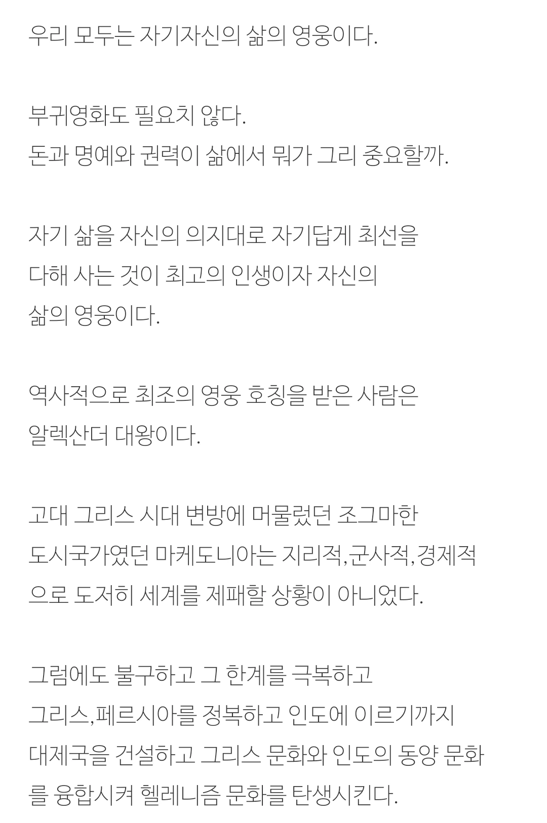 열심히 사는 우리 모두가 우리 삶의 영웅인 것이지.