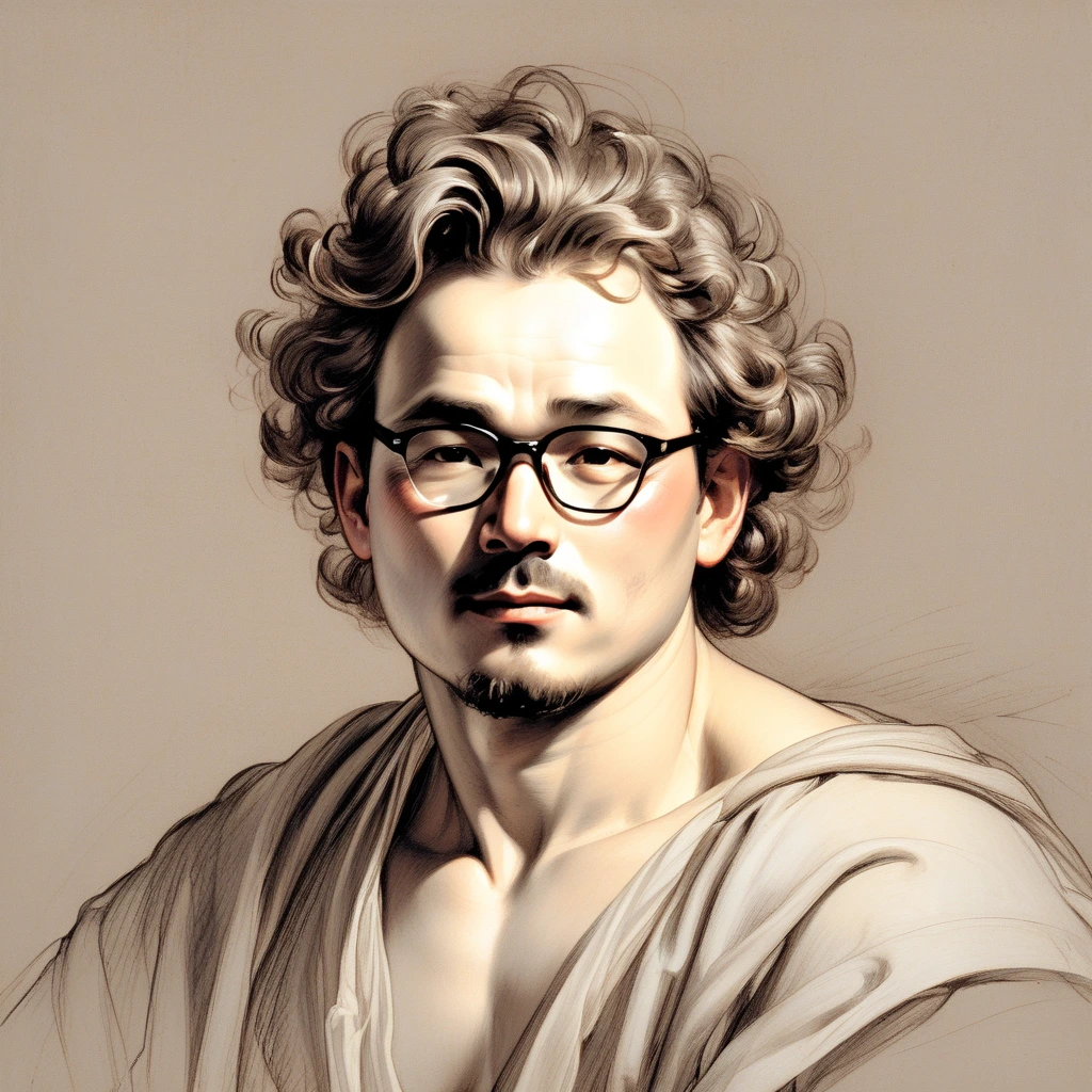 AI가 해석해서 그린 Plato Won ,AI가 내가 곱슬머리인 줄 어케 알고 학창시절 헤어스타일을 그대로 재현하다니,발에 사유하는 느낌표,질문하는 물음표도 예술적 표현인듯 ㅎㅎ