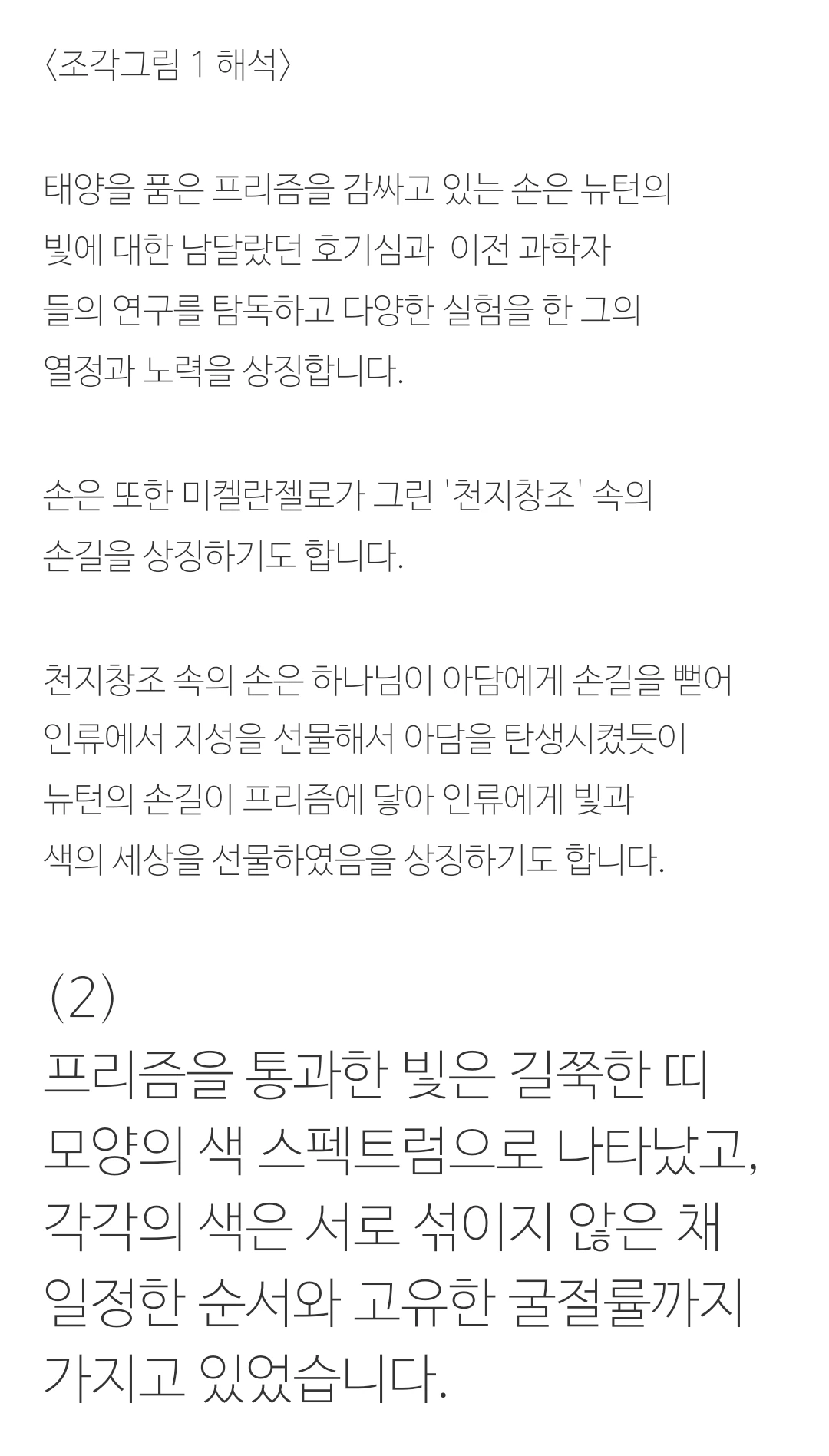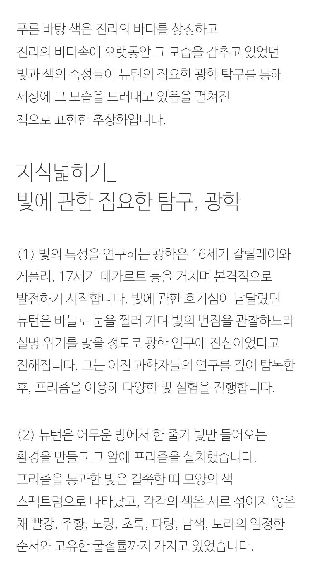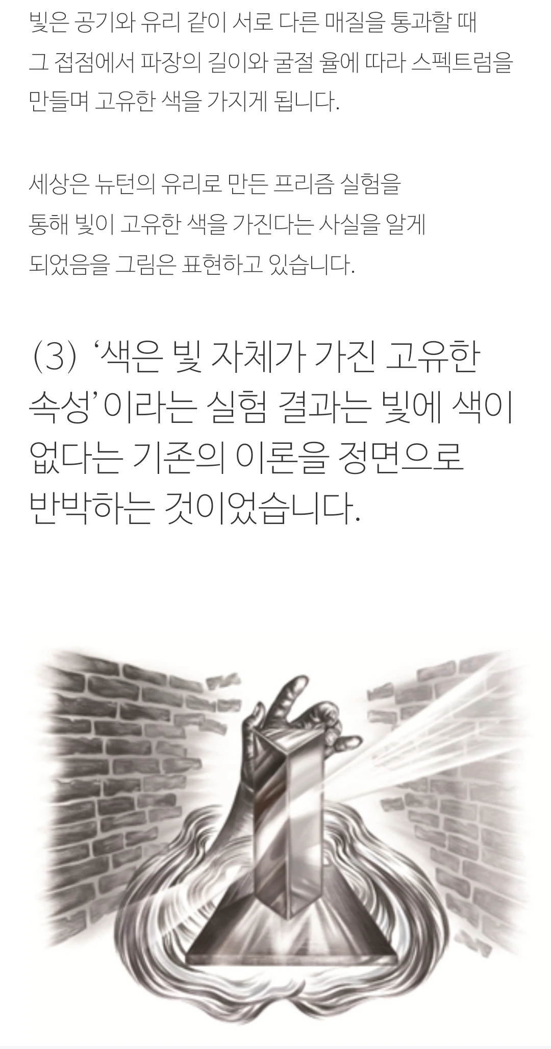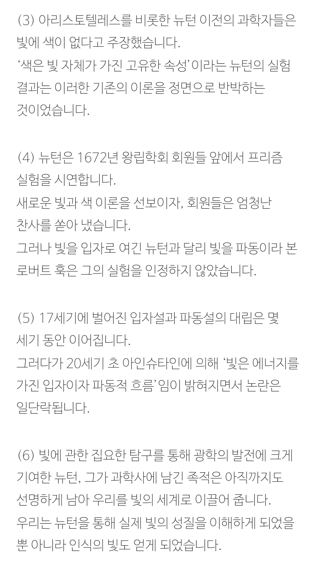 지닌다는 사실"을 뉴턴의 집요한 광학 탐구를 통해 알게 되었다.