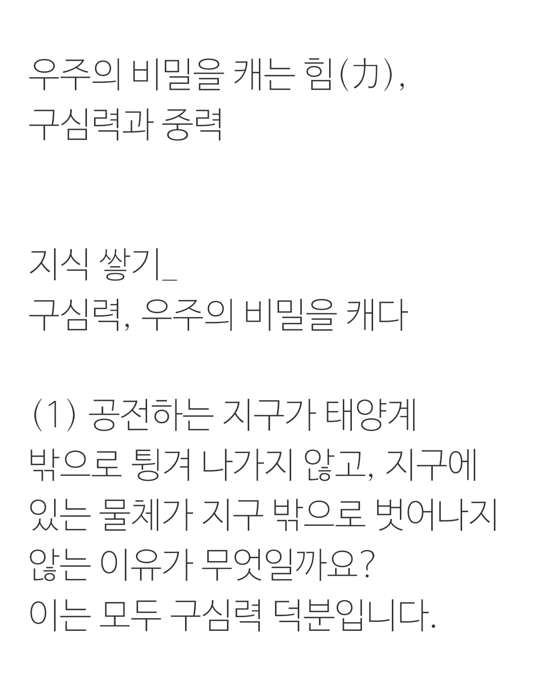 우주의 비밀을 캐는 힘(力),구심력과 중력