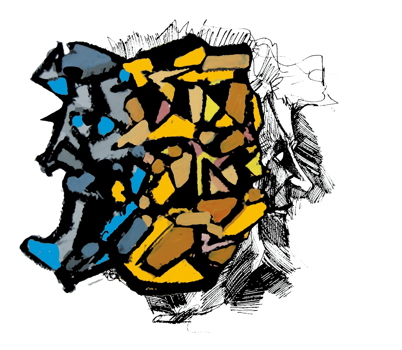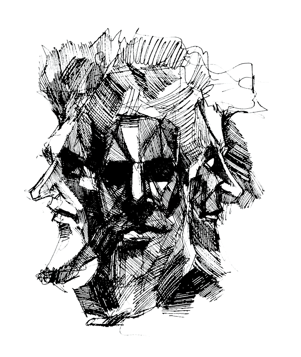 이를 추상 그림 6조각으로 표현하였다. 그림 1 스케치 그림은 이상적인 국가의 세 계급을 표현하였다. 중앙에 표현된 그림이 통치자, 왼쪽이 전사 계급, 오른쪽이 생산자 계급을 의미한다.
