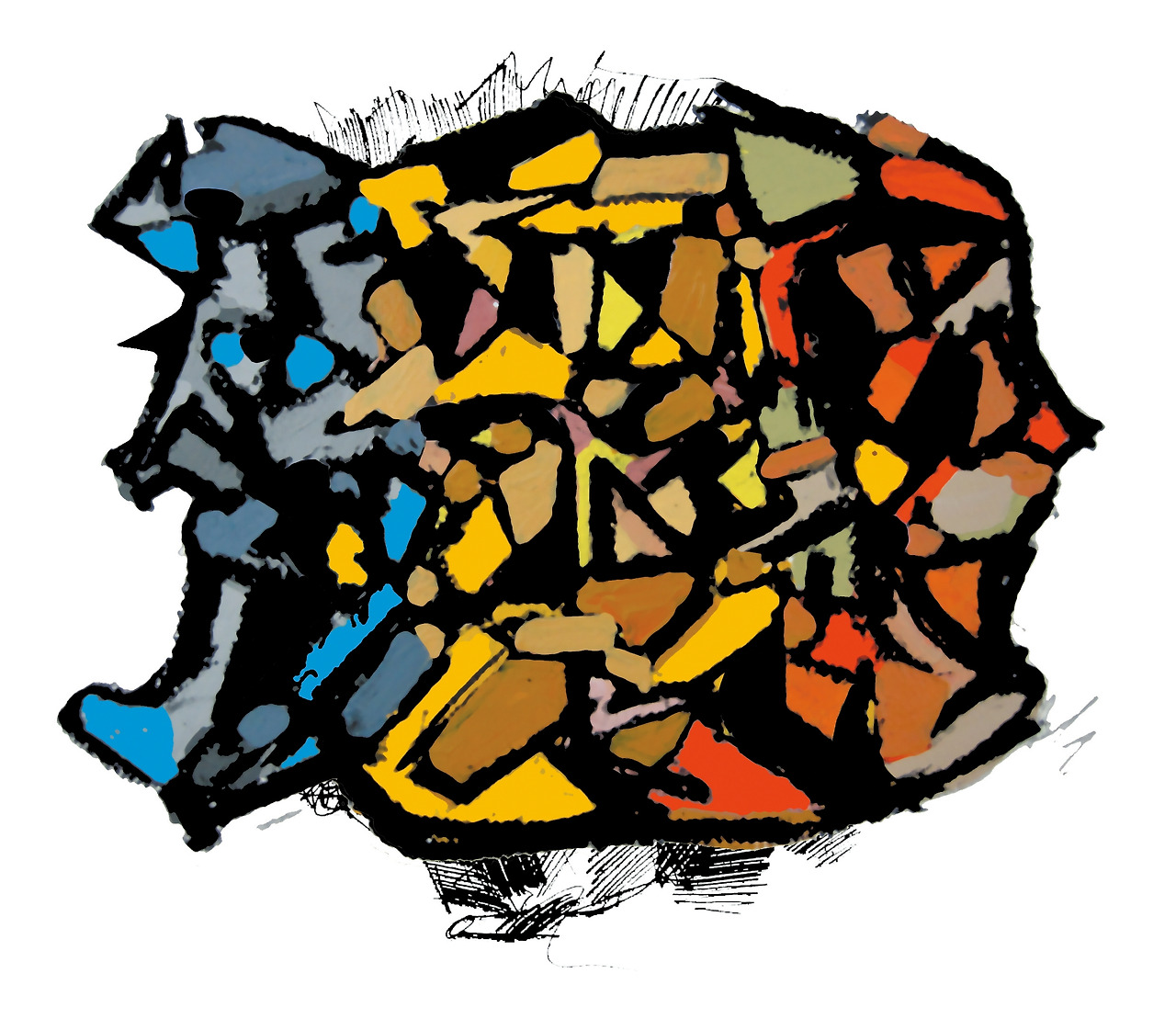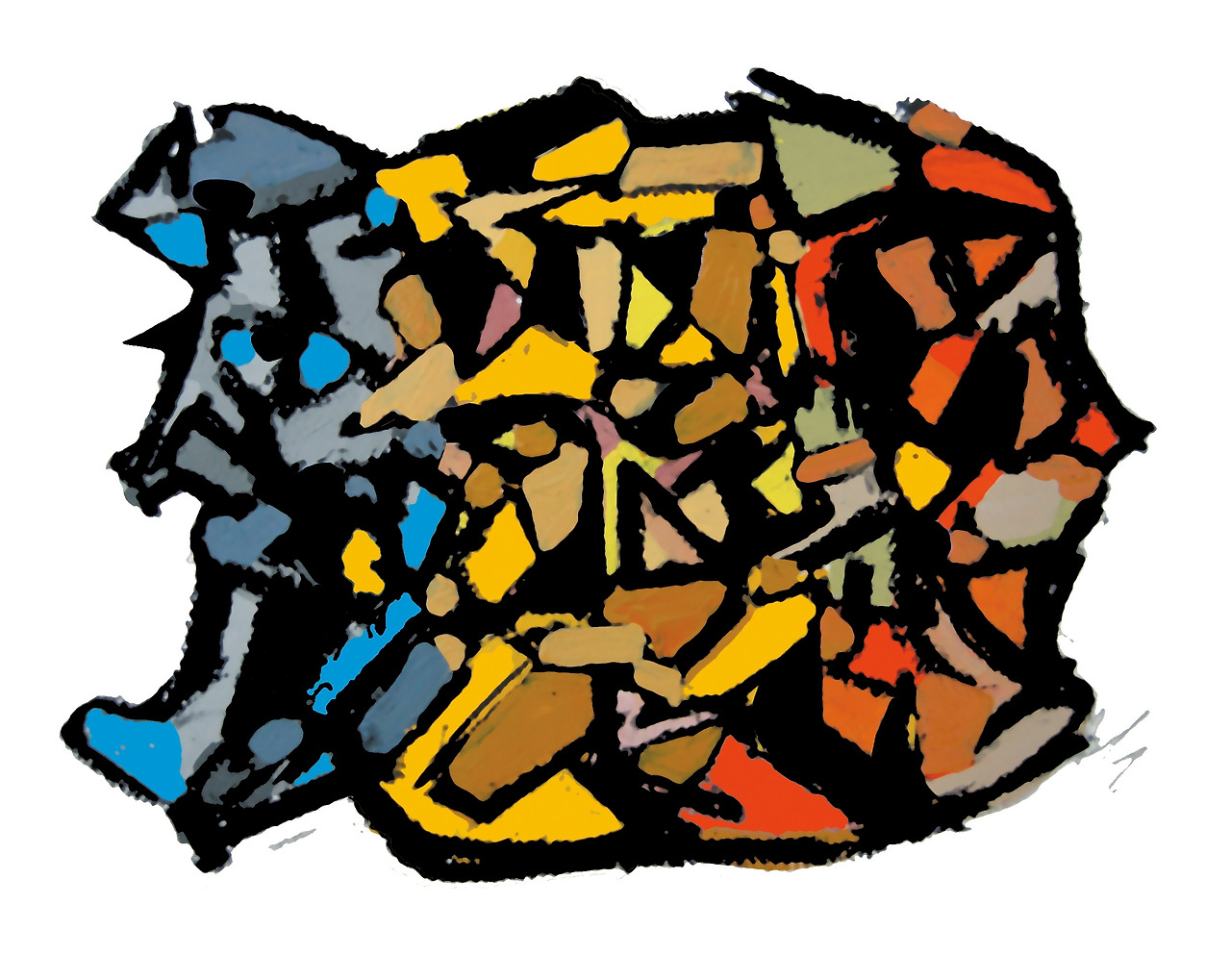 추상 그림에 드문 드문 표현된 흰색은 이상적인 국가의 정의란 세 계급이 각자가 각자의 위치에서 각자의 역할에 충실할 때 이룩된다는 점을 추상화는 로 표현하였다.