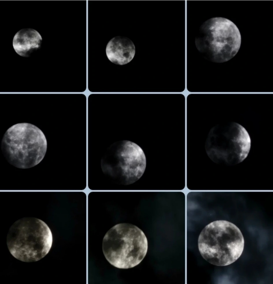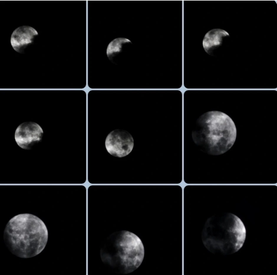 가로 세로 3묶음씩 아홉의 한가위 보름달을 앵글에 담았다.