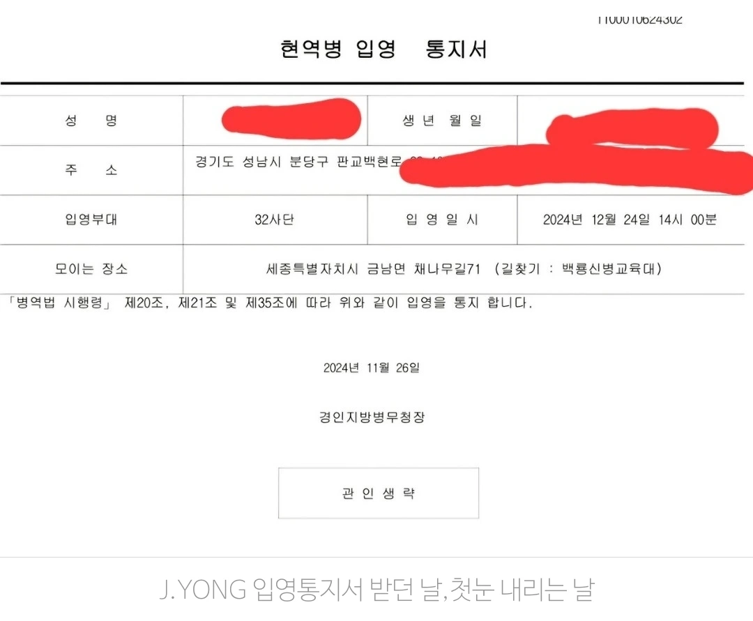 첫눈 내리는 날, 입영 통지서 받던 날^^