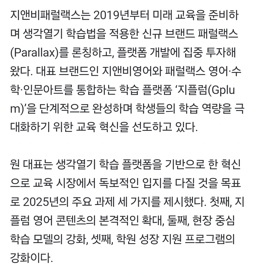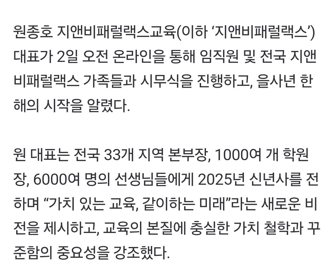 가치 있는 교육,같이하는 미래,지앤비패럴랙스 신년사