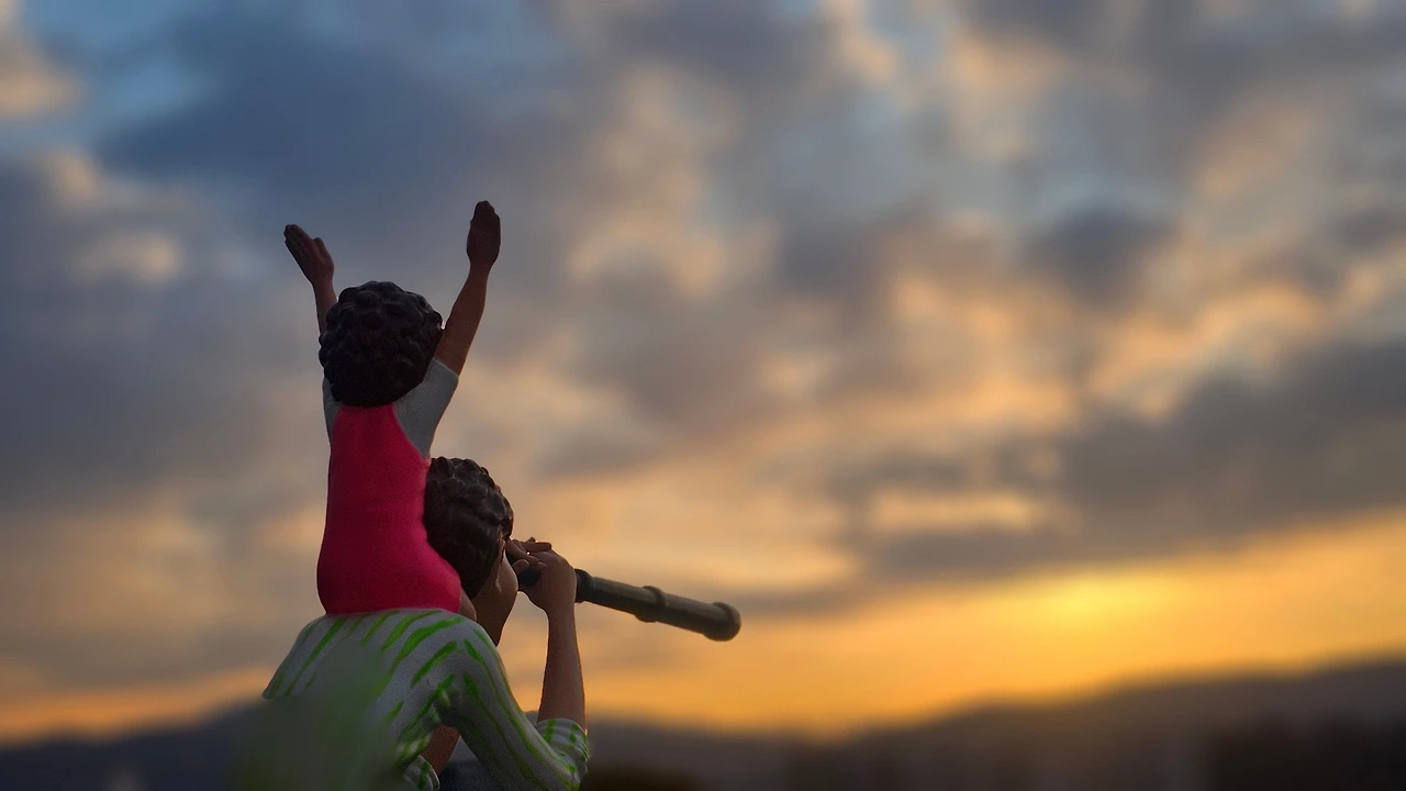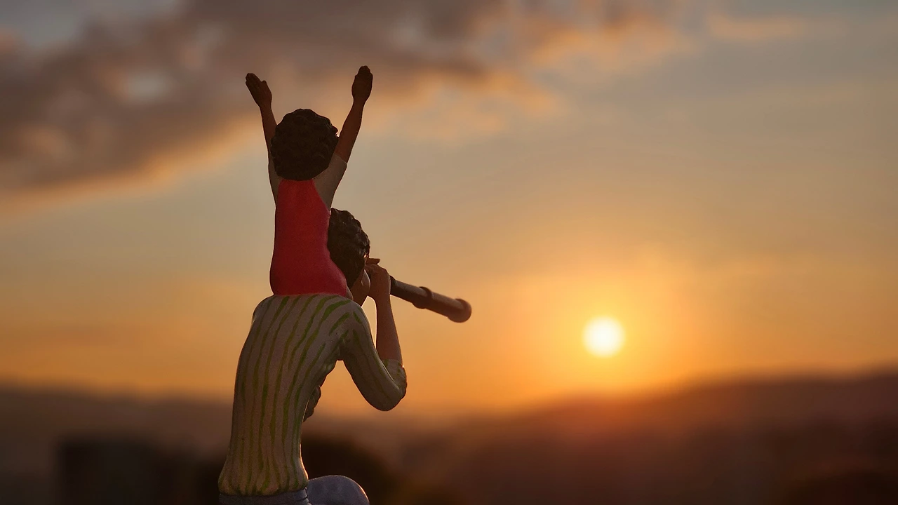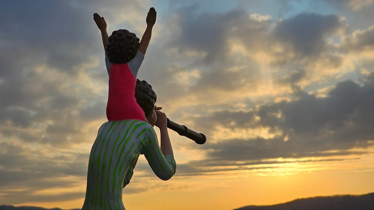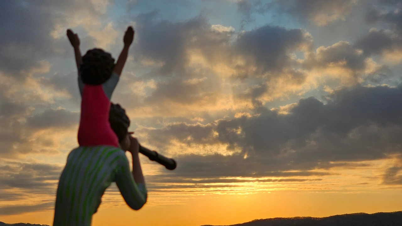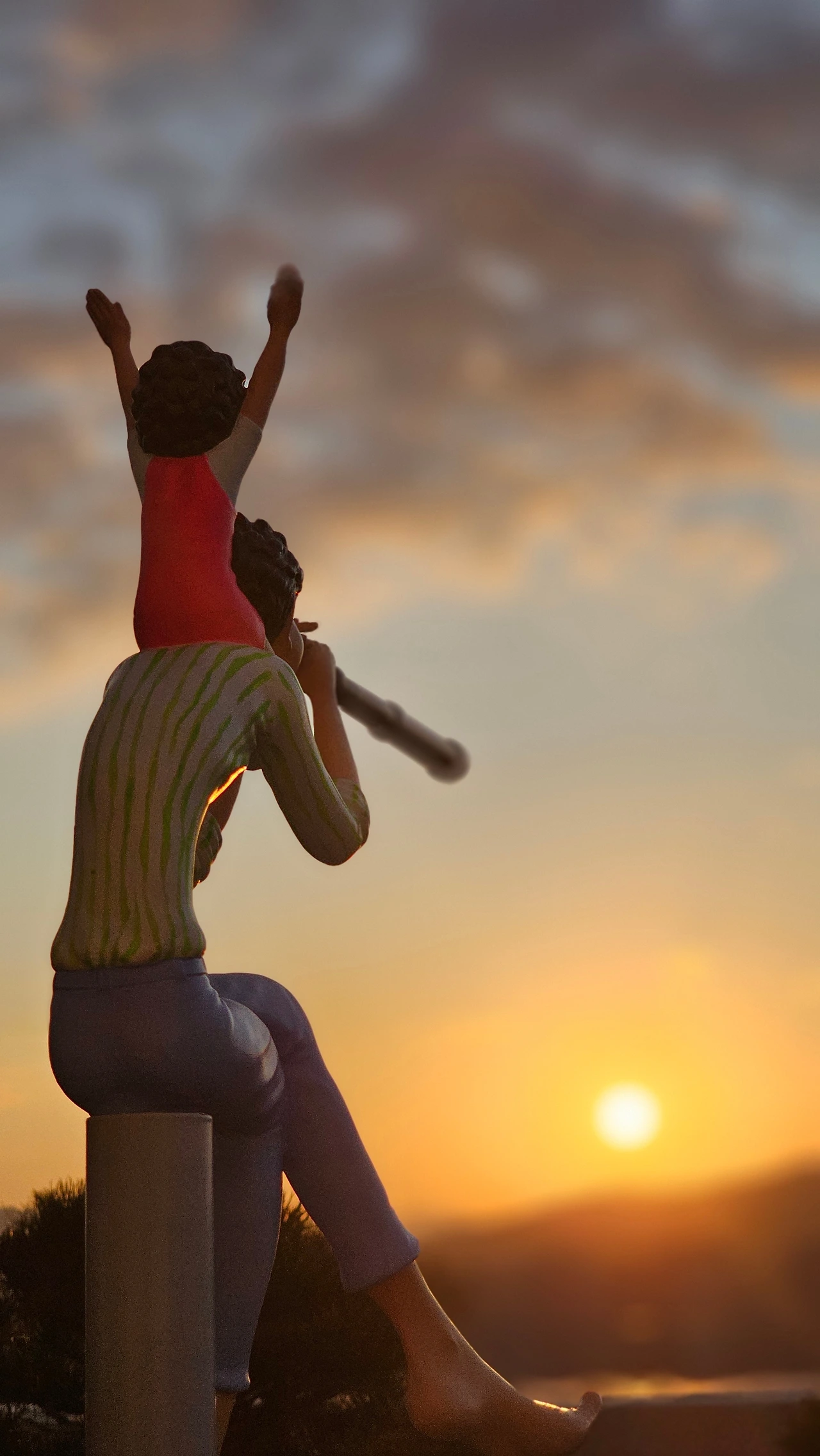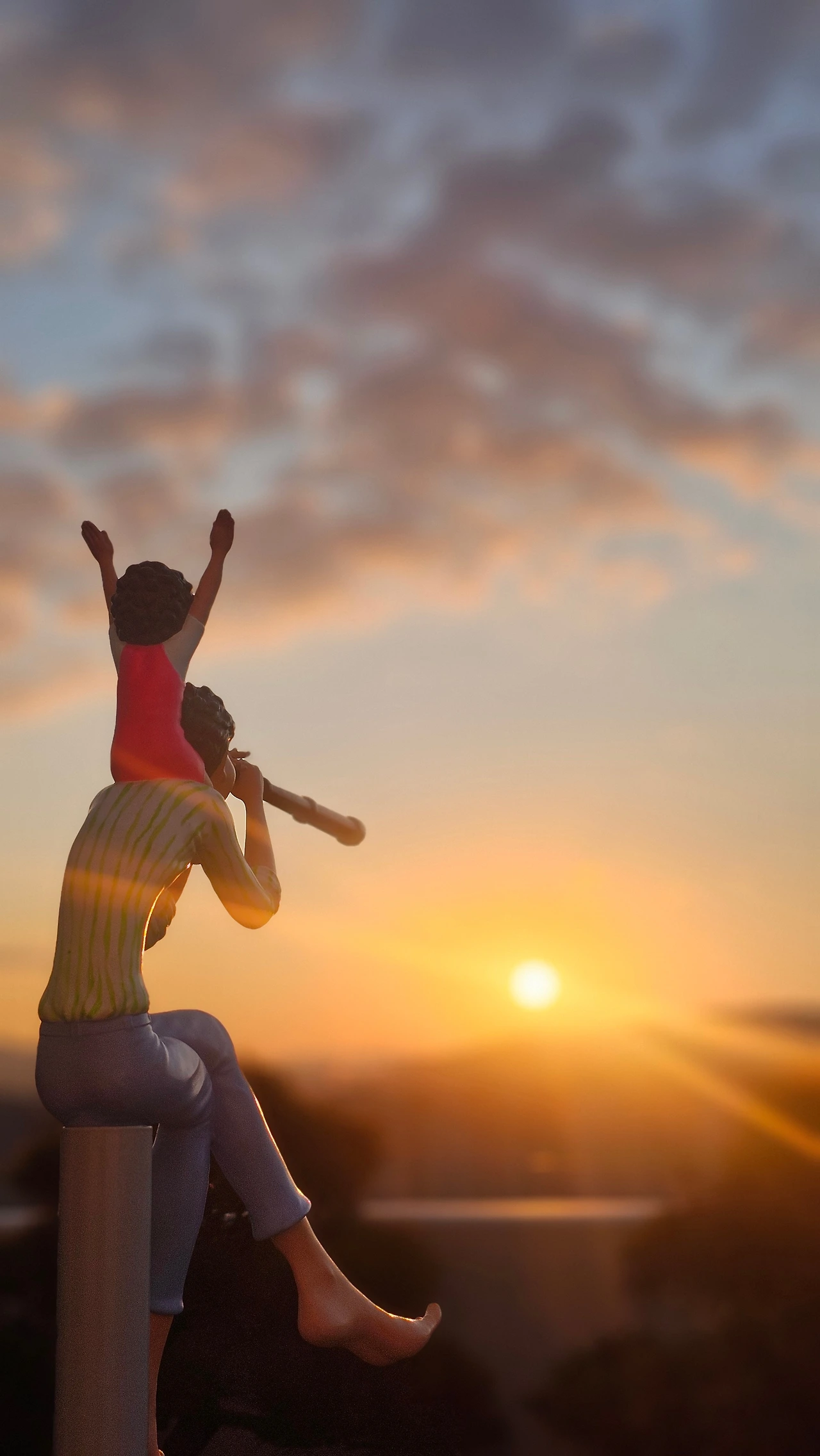 아빠가 아들을 목마 태우고