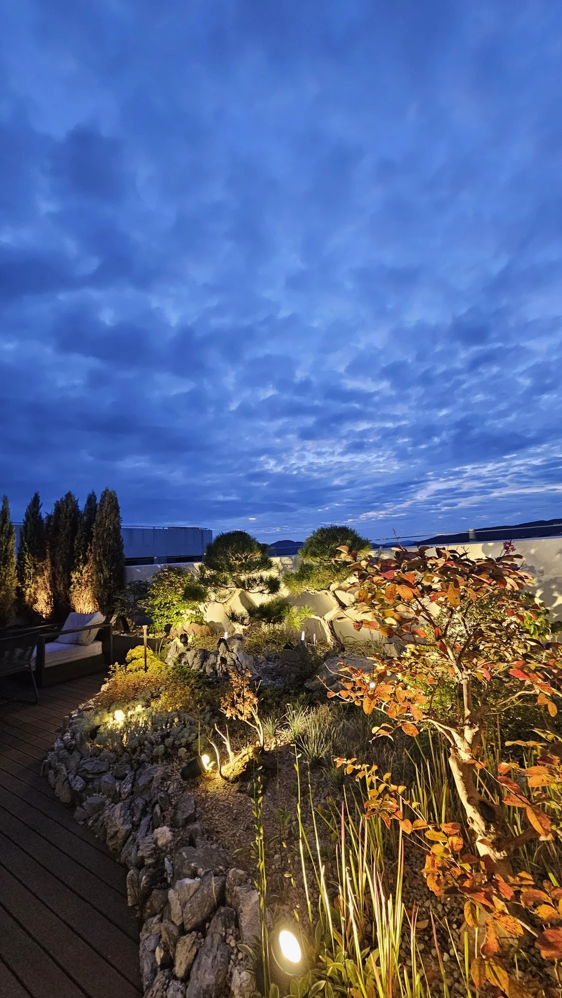 구름이 조화를 이루며 푸른색을 내는 것이다.