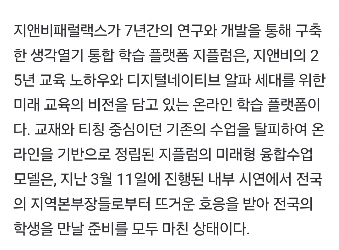 생각열기학습플랫폼,지플럼 전국 순회 모델수업 교육 시작