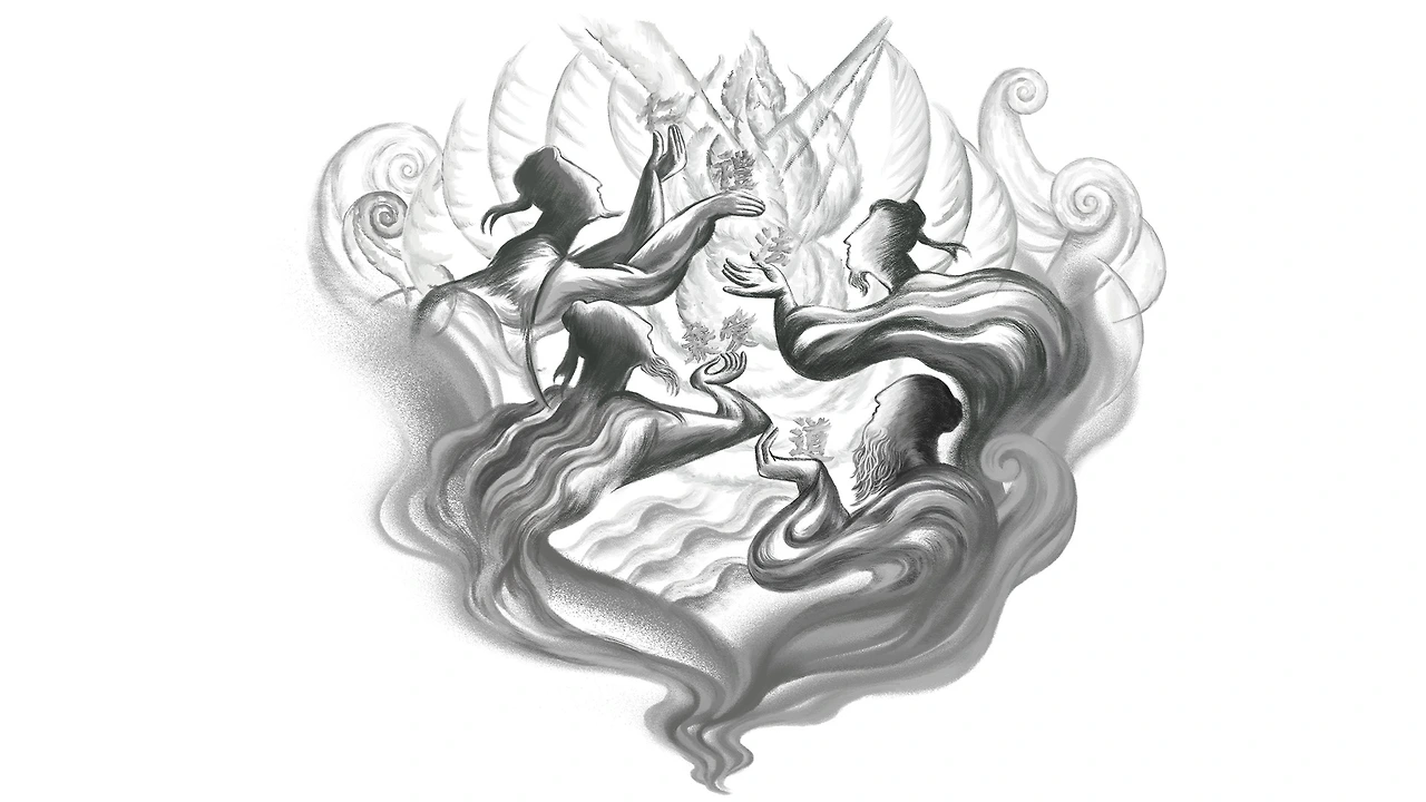 그들의 손바닥 위에 놓인 꽃봉오리들은